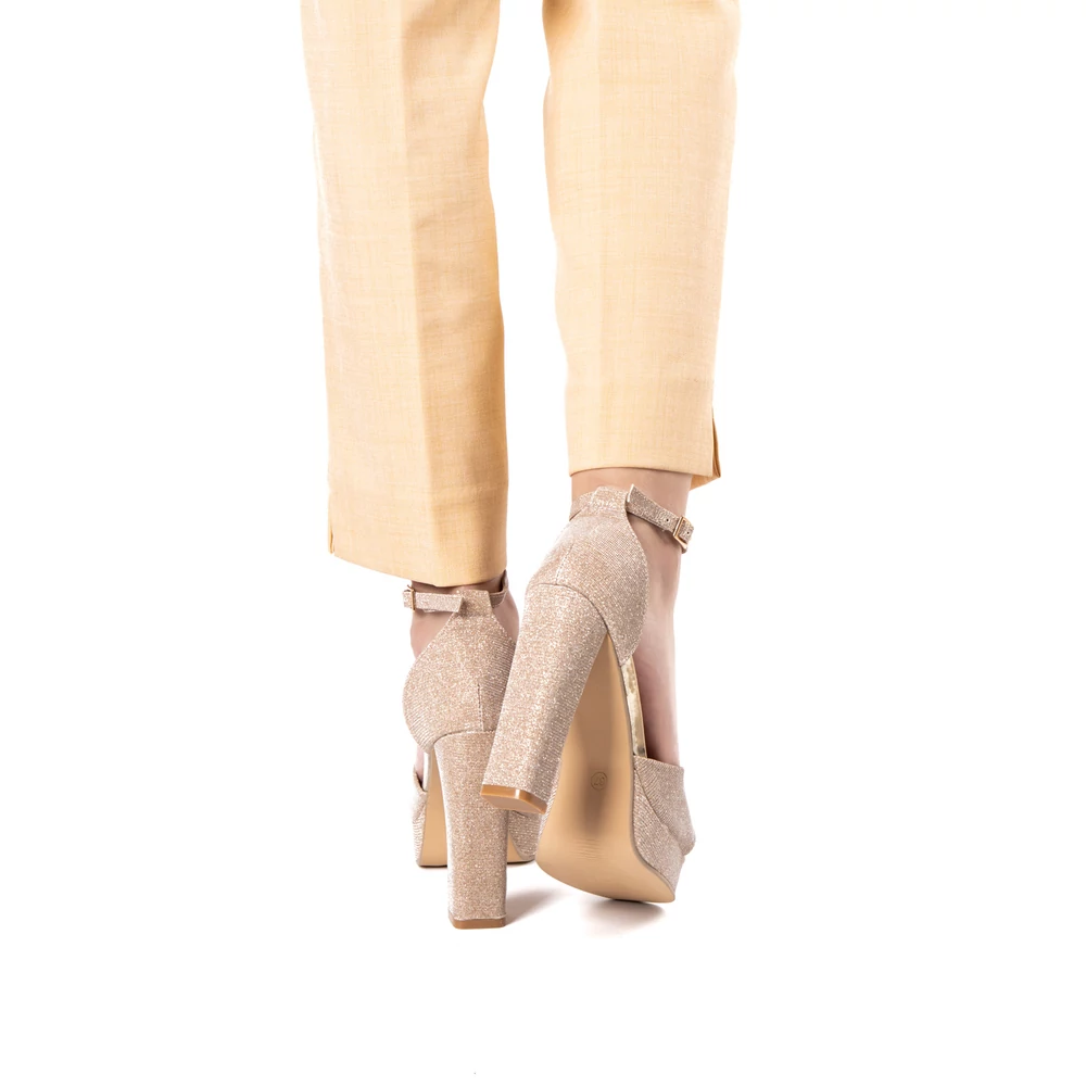 Arany Csillogó Bokapántos Szandál Blokksarokkal