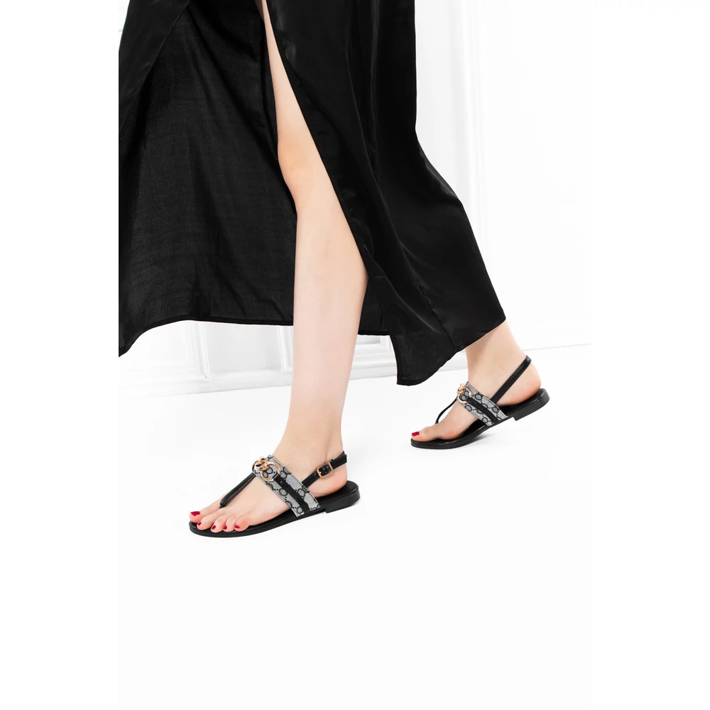 Tree Fekete Keresztpántos Művelúr Szandál Strasszköves Díszítéssel