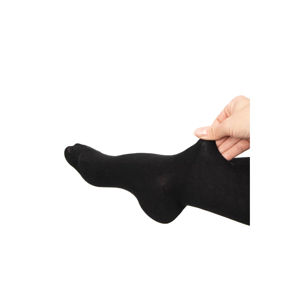 Vastag, elasztikus harisnya, melynek mosása 30 fok fölött nem ajánlott.