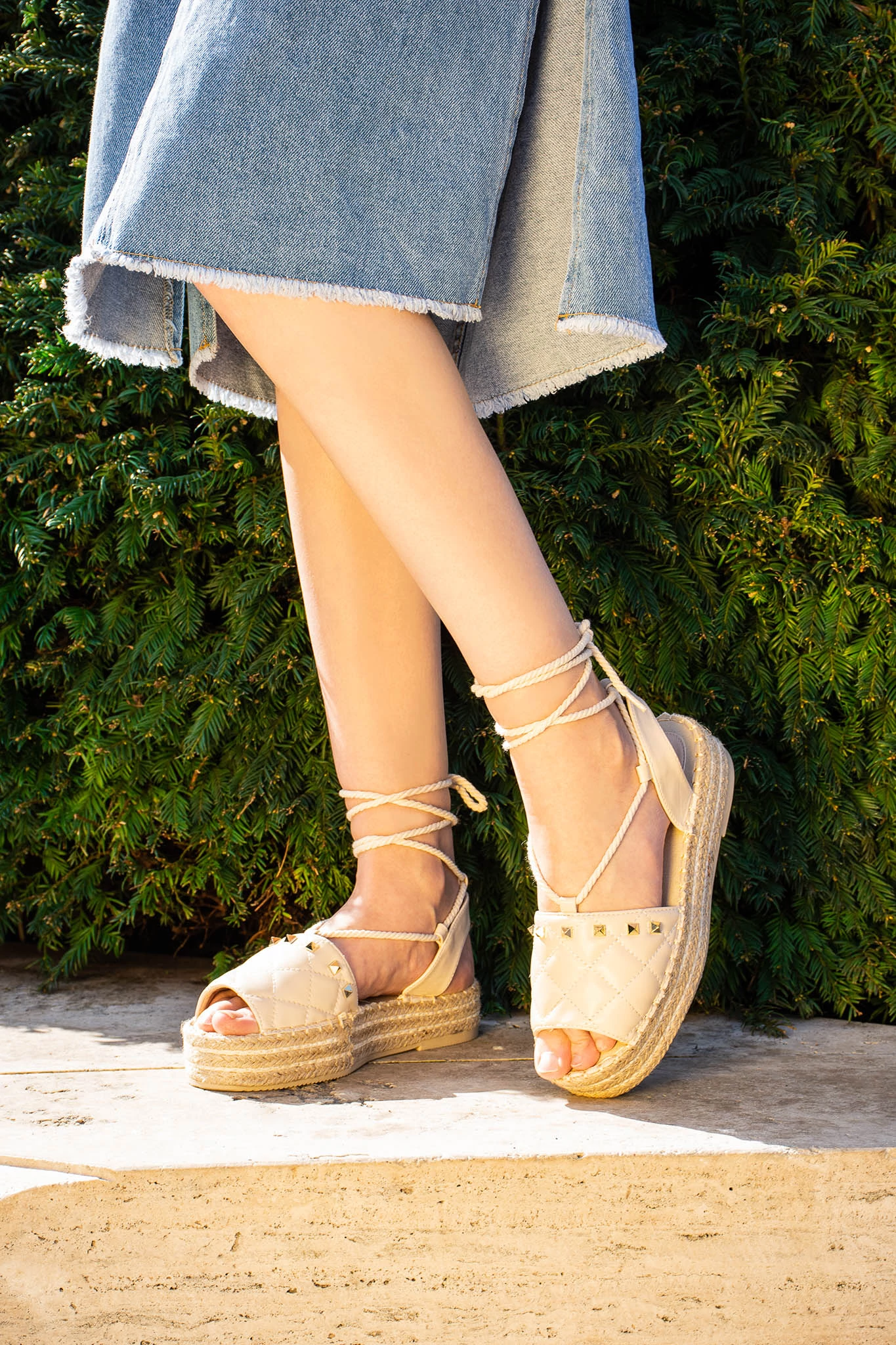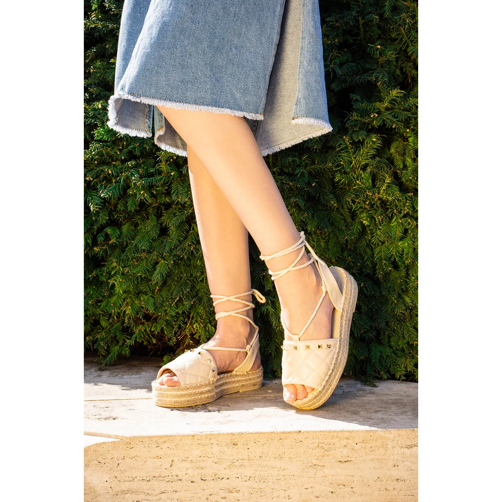 Barack Színű Háncstalpú Platform Műbőr Pántú Szegecselt Szandál