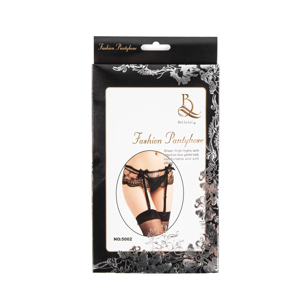 OLLIKE Fekete Neccharisnya Csipkés Harisnyatartó Kialakítással