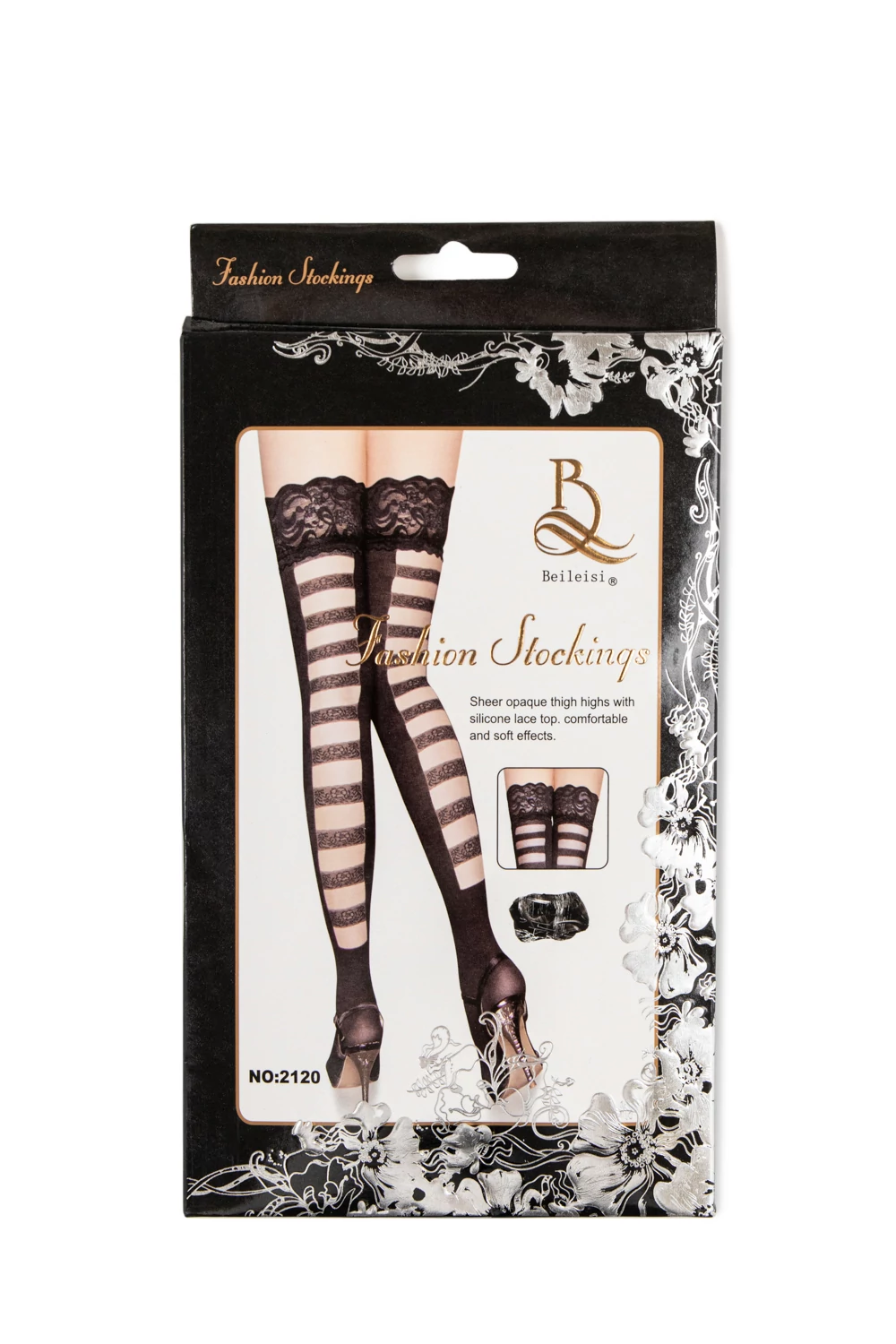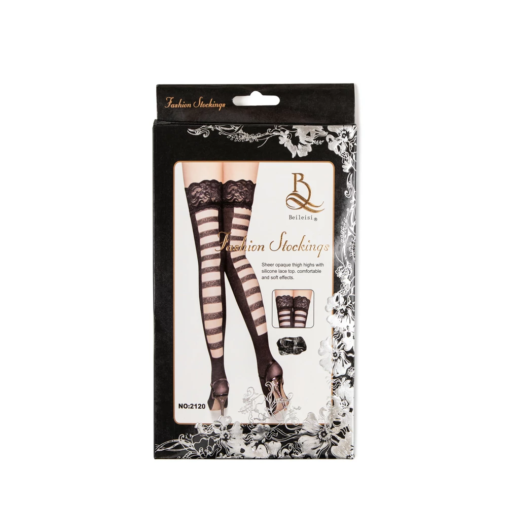 OLLIKE Fekete Neccharisnya Csipkés Harisnyatartó Kialakítással