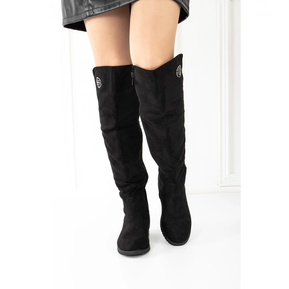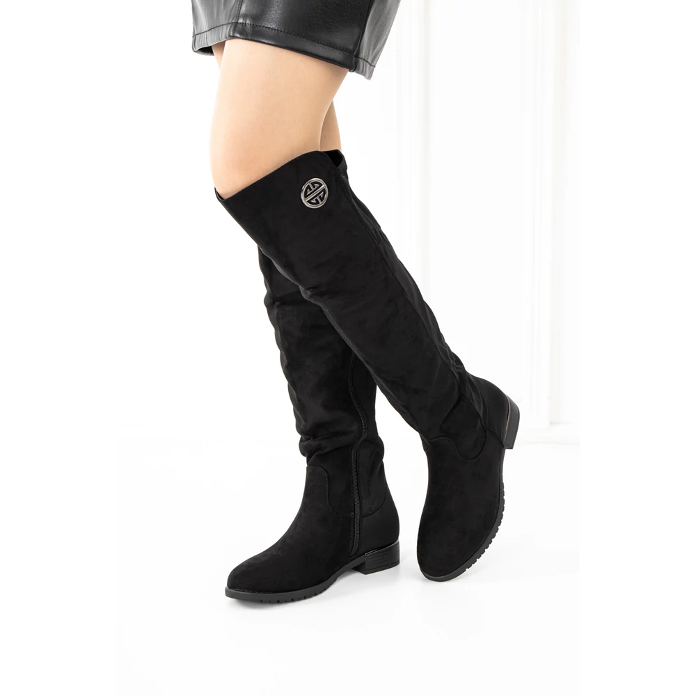 Egyszerű kialakítású, őszi magasszárú csizma az átmeneti időszakra, béléssel a belsejében.