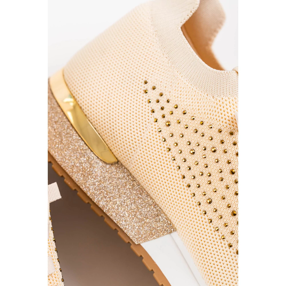 Bézs Arany Női Slip-On Sarok Dísszel Flitterekkel