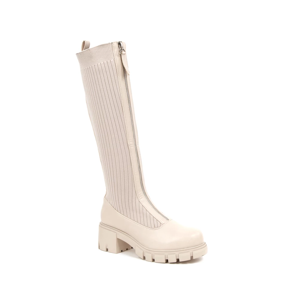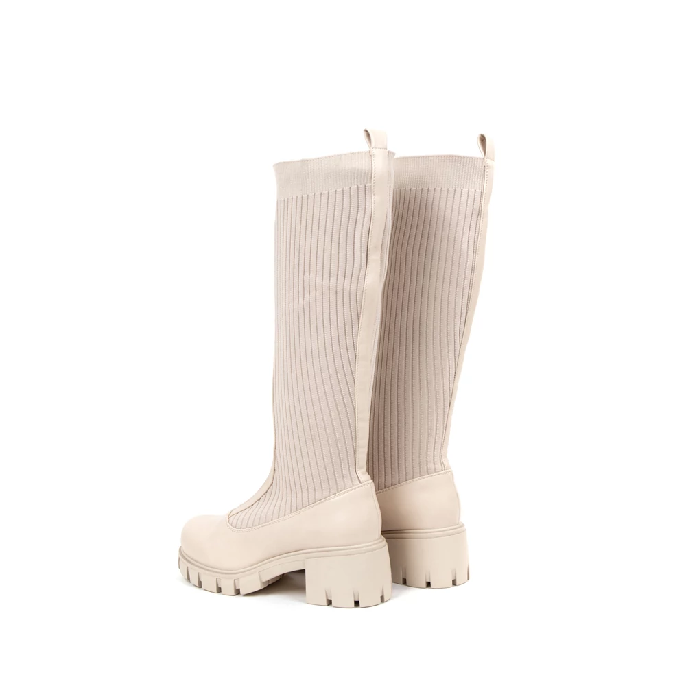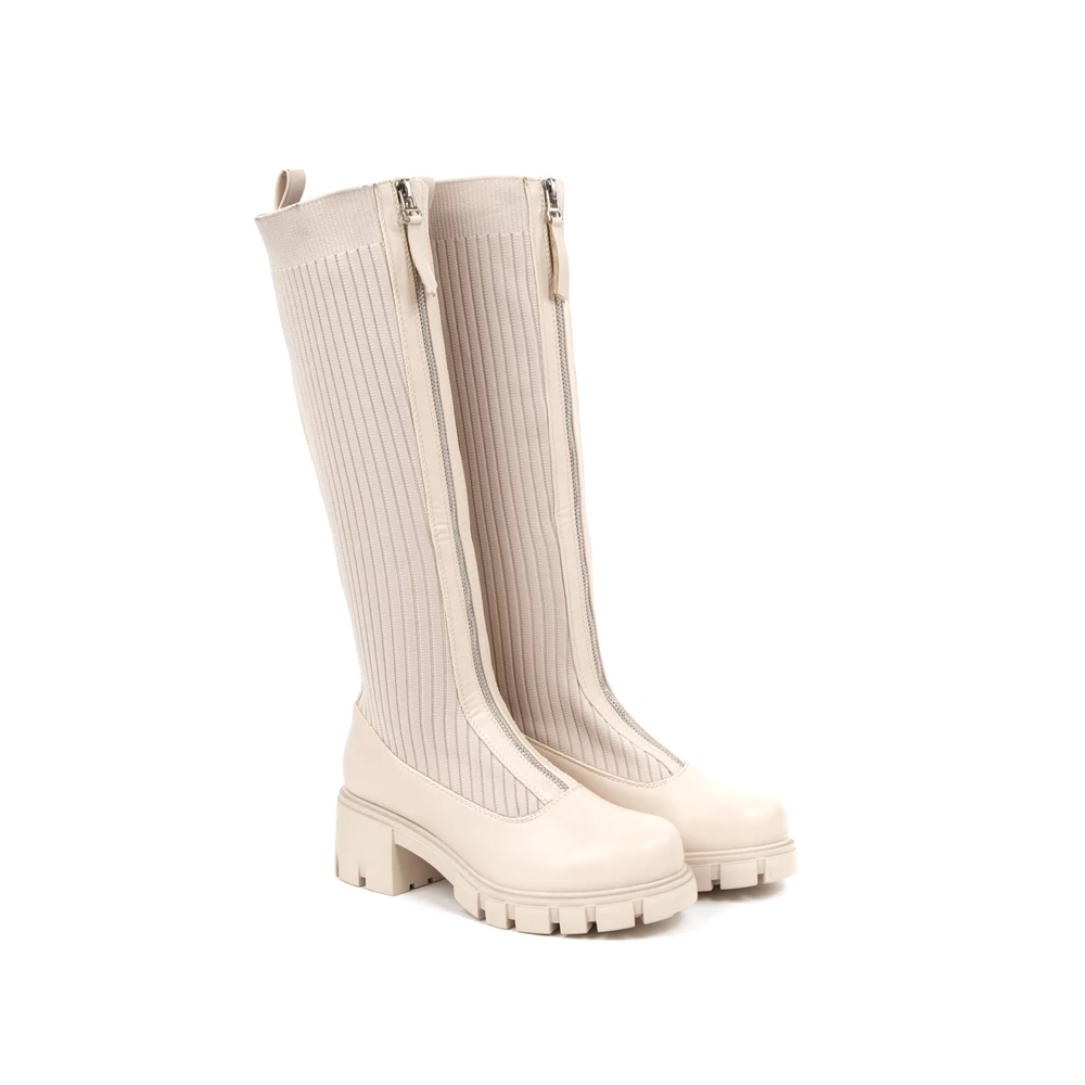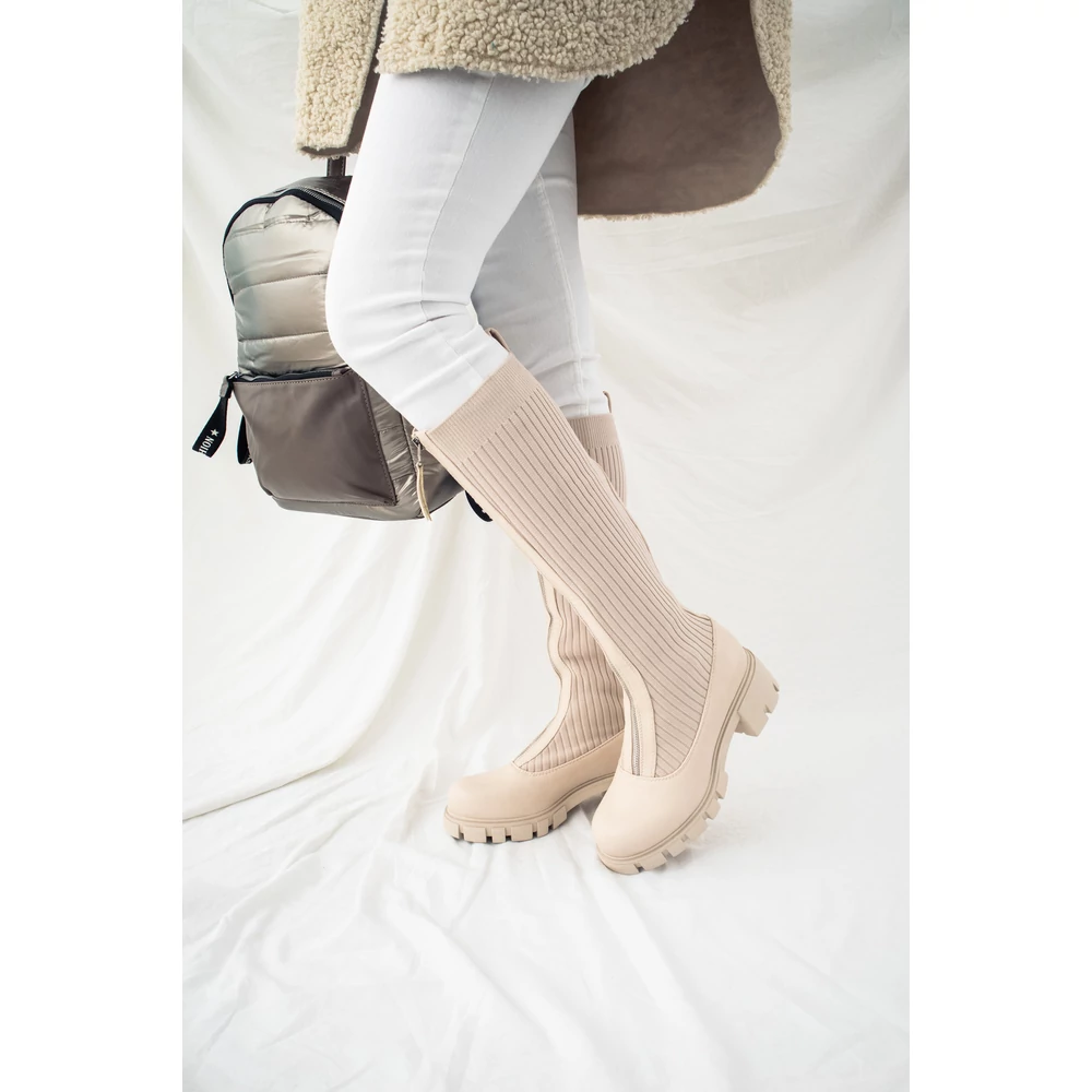 Egyszerű kialakítású, bélelt magasszárú csizma az átmeneti időszakra.