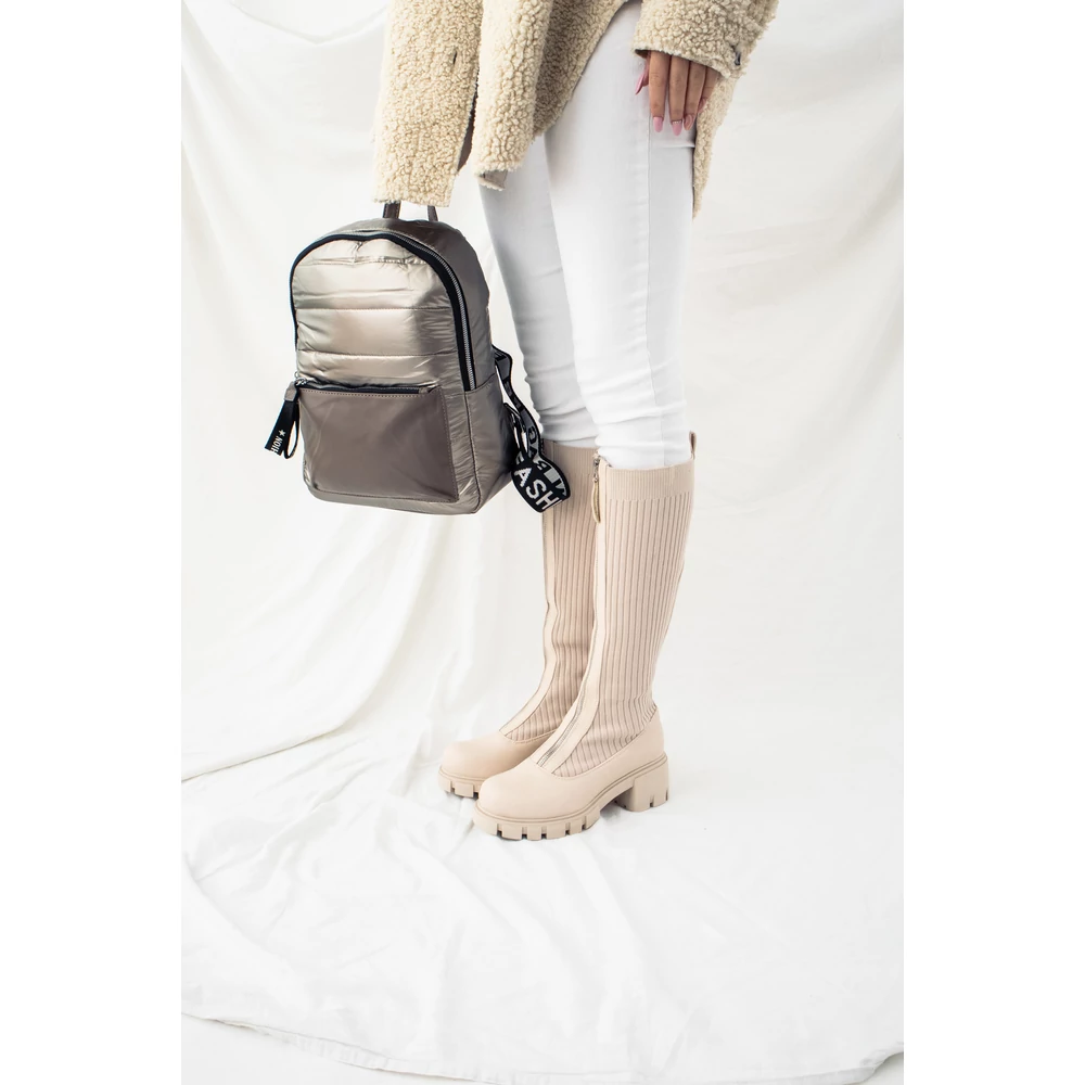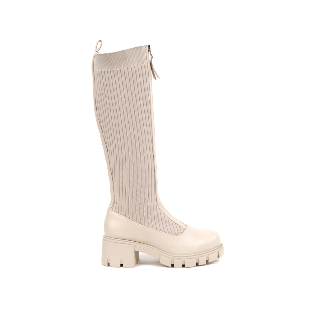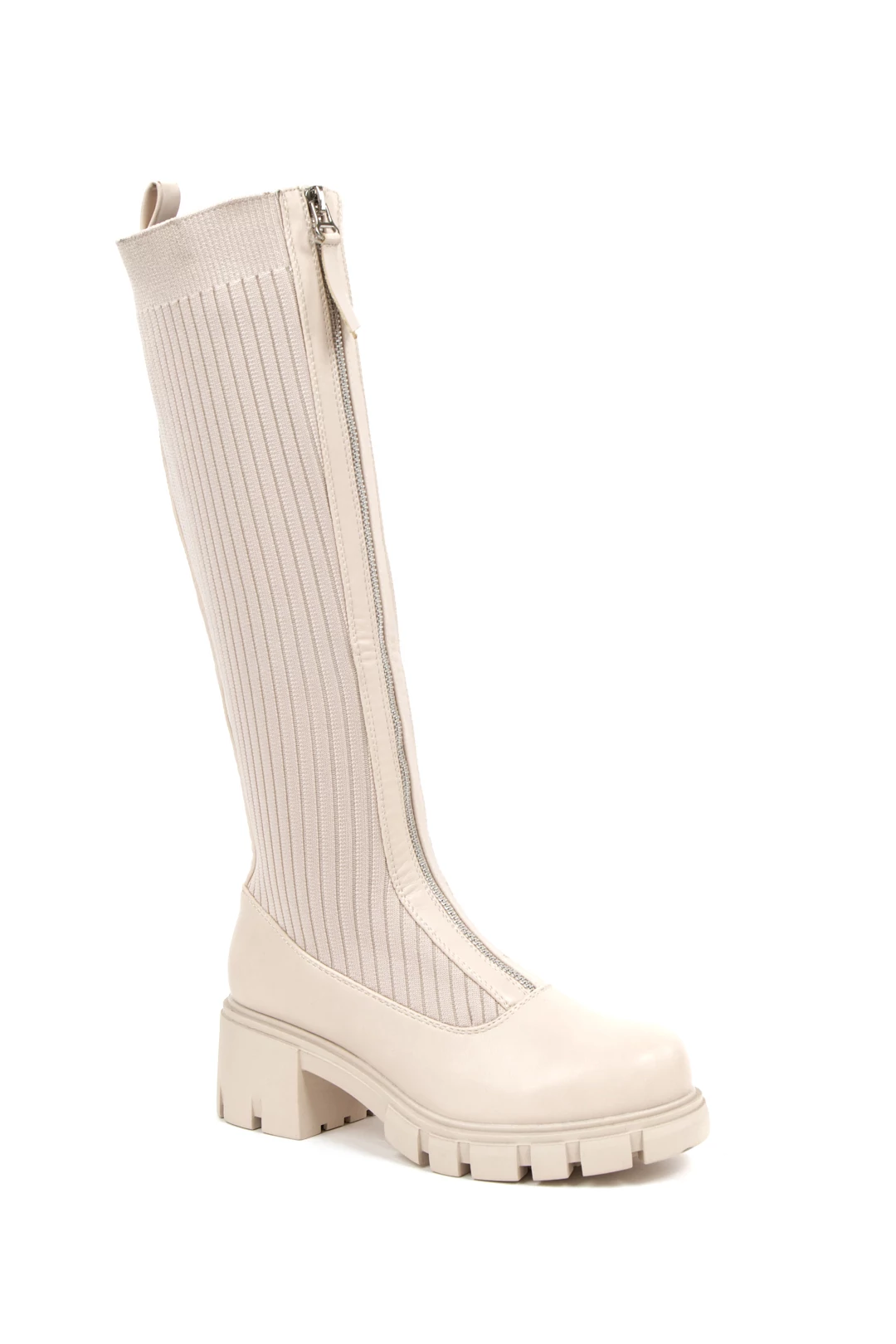 Egyszerű kialakítású, bélelt magasszárú csizma az átmeneti időszakra.