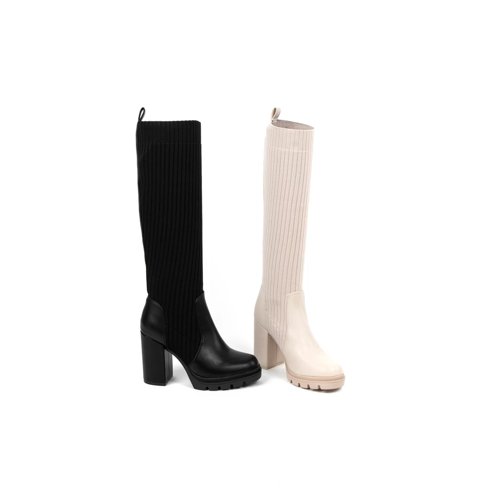 Yesmile Fekete Műbőr Platform Talpú Magasszárú Csizma