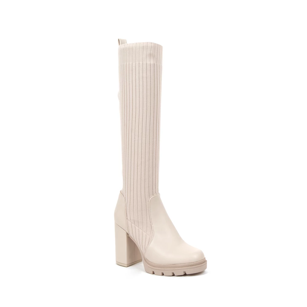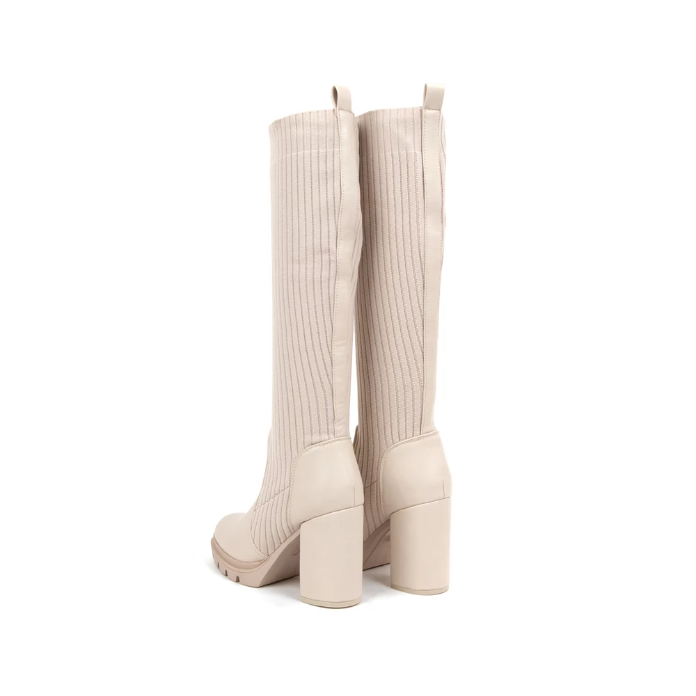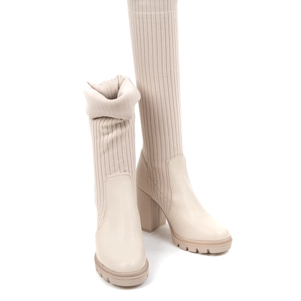 Zokniszerű kialakítása miatt egyszerűen illeszkedik a láb formájához, blokk sarka pedig igazán egyedi lábbelivé varázsolja.