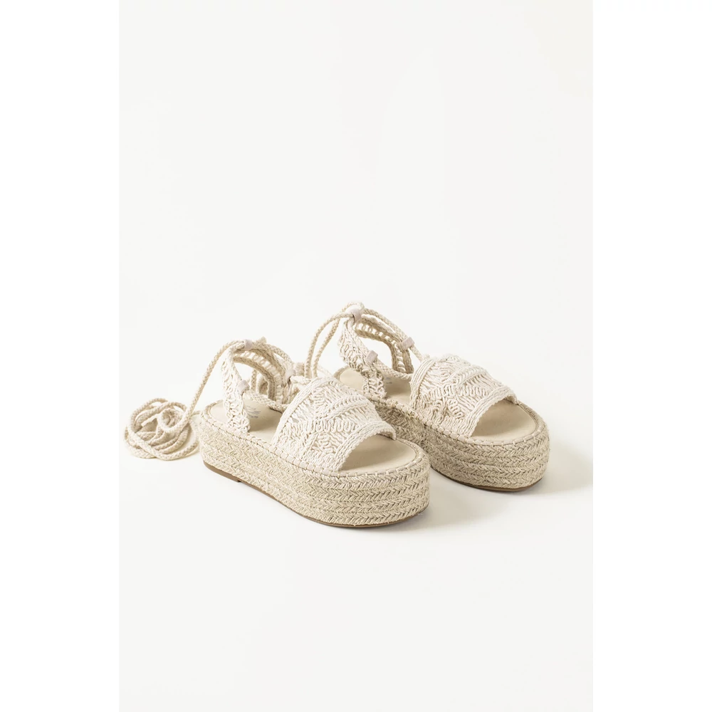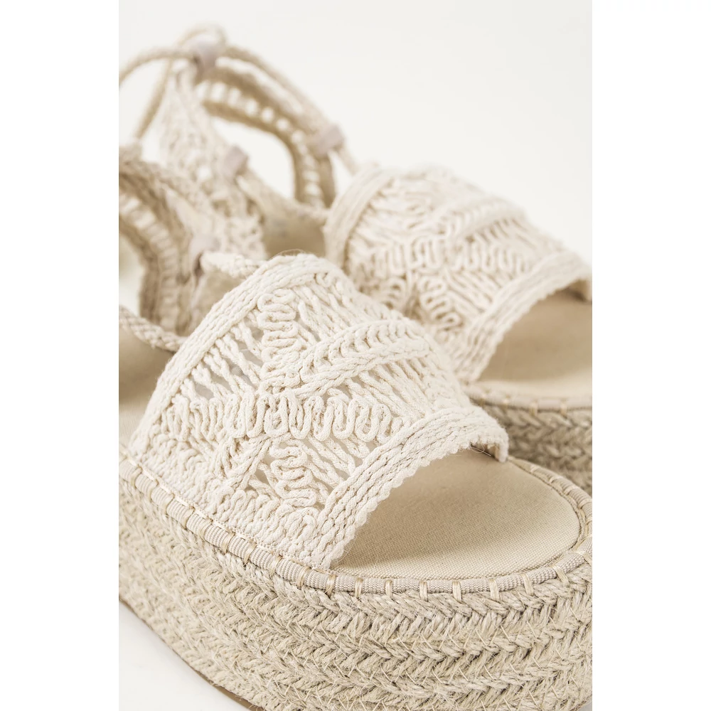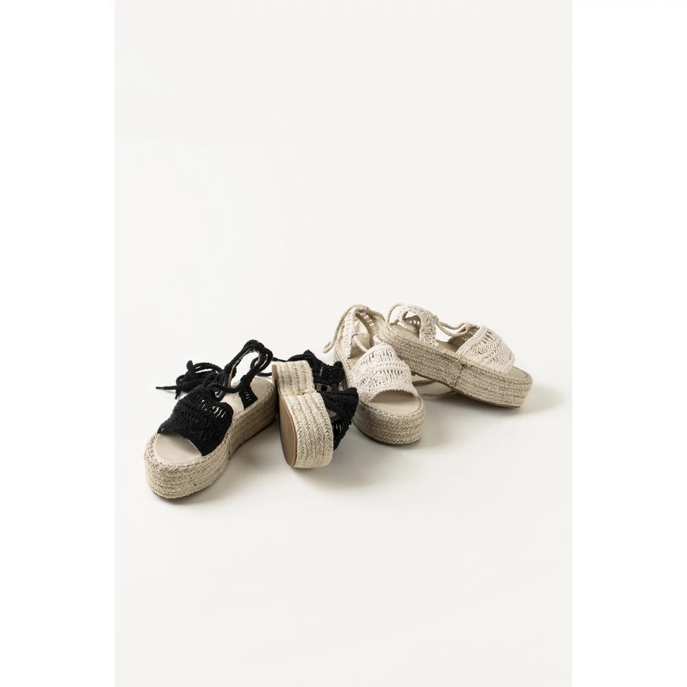 Horgolt anyagú, trendi, platform, háncstalpú, nyári szandál, aminek megkötős részei segítik a rögzítését. ennek köszönhetően rendkívül szexi. Farmerhoz és nyári ruhához is tökéletes választás, munkahelyen, buliban is feldobja a szetted!
