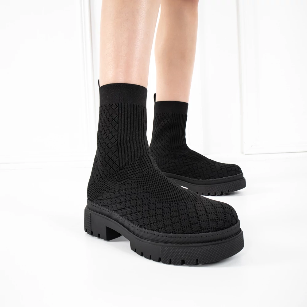Bosido Fekete Műnubuk Bokacsizma Csipkés Szárral És Strasszköves Csattal