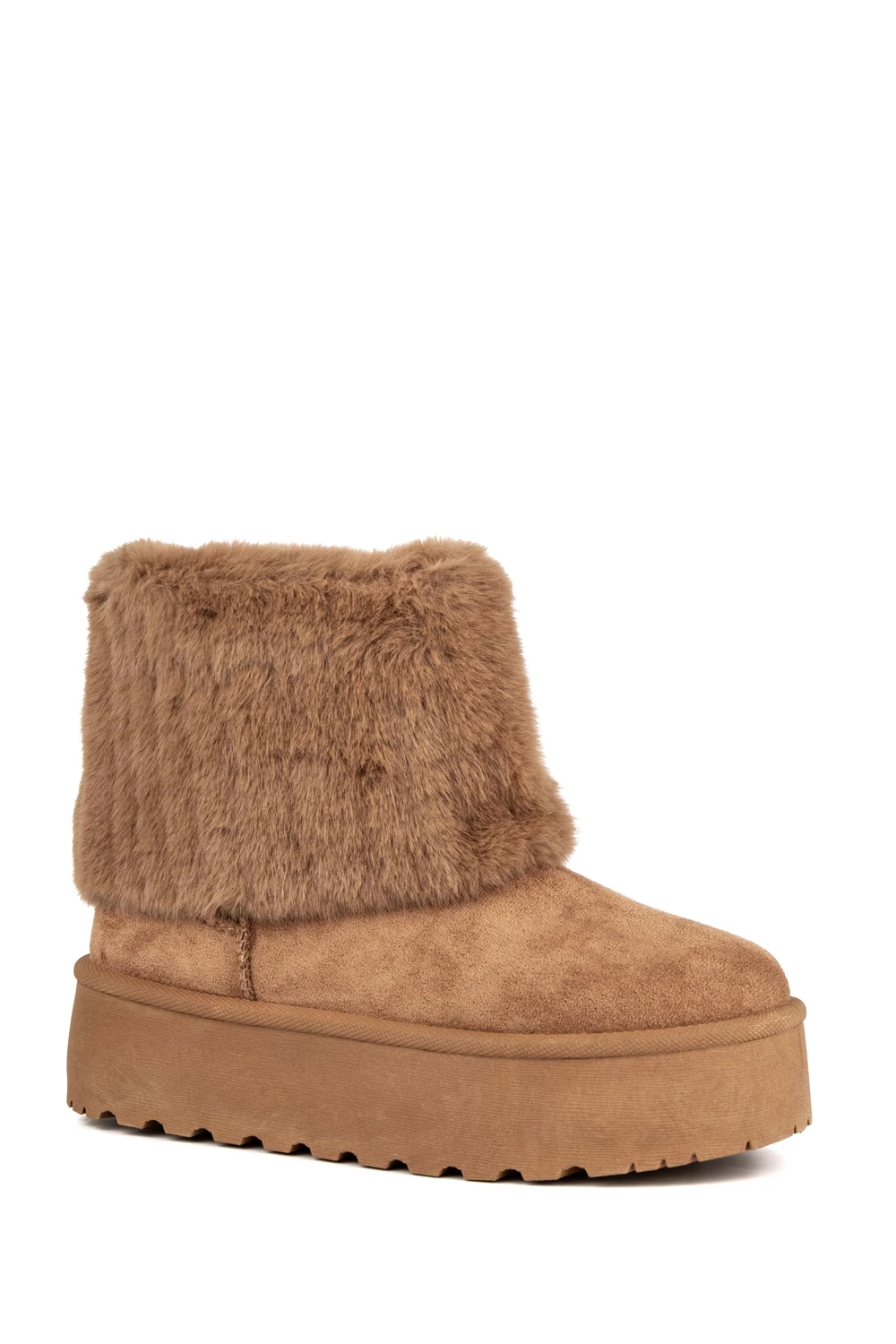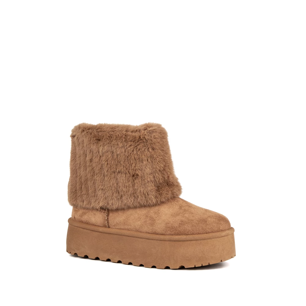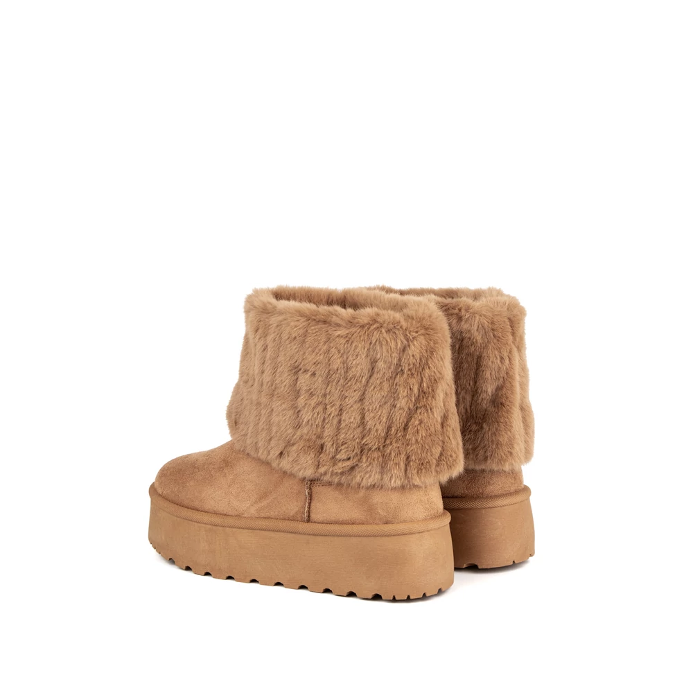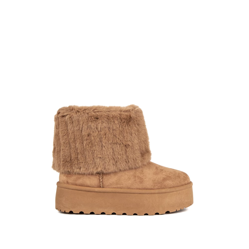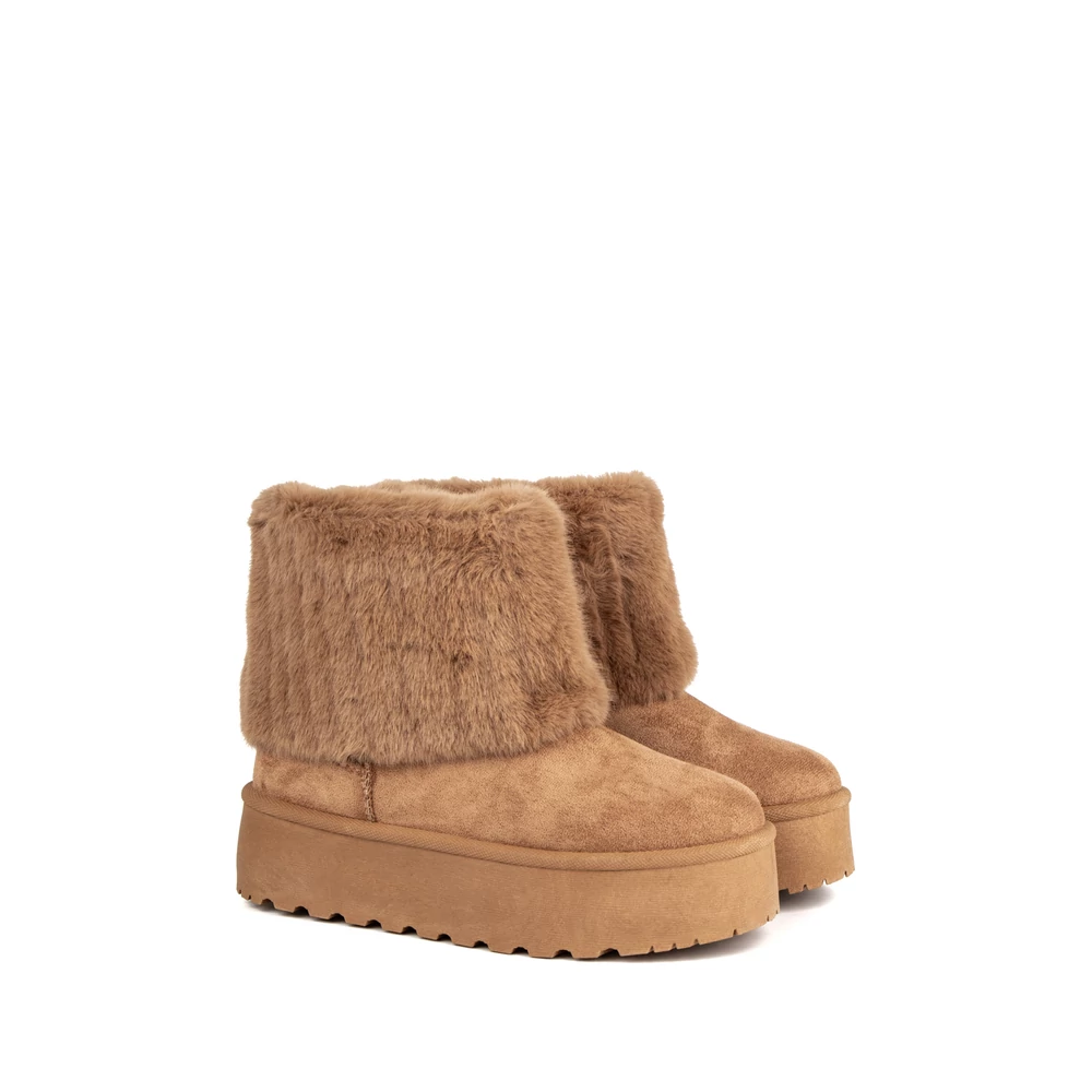Bosido Barna Művelúr Telitalpú Bokacsizma Műszőrmével