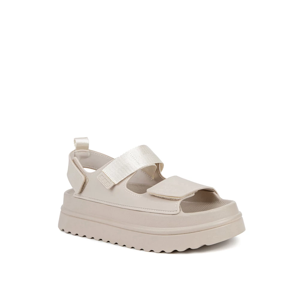 Ez a trendi platform szandál tökéletes választás, ha szeretnél egy kis extra magasságot csempészni a megjelenésedbe anélkül, hogy lemondanál a kényelemről. Két széles pántja stabil tartást biztosít, a mutatós csatok pedig stílusos részletekkel dobják fel a dizájnt. A pántok tépőzáras kialakítása lehetővé teszi, hogy könnyedén a lábfejedre igazítsd őket. A kényelmes, párnázott platform talp gondoskodik a puha járásról, így bátran viselheted akár egész nap. Tökéletes társ a nyári városi kalandokhoz, kiruccanásokhoz vagy egy laza hétvégi szetthez.