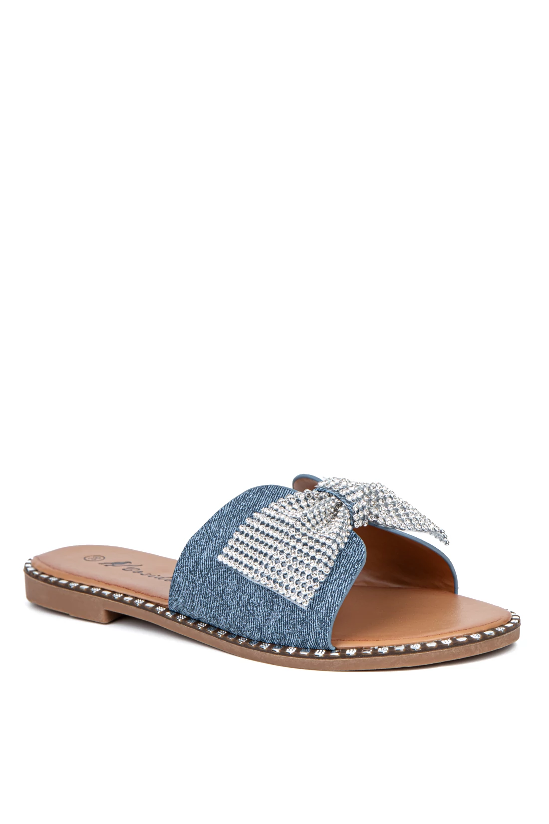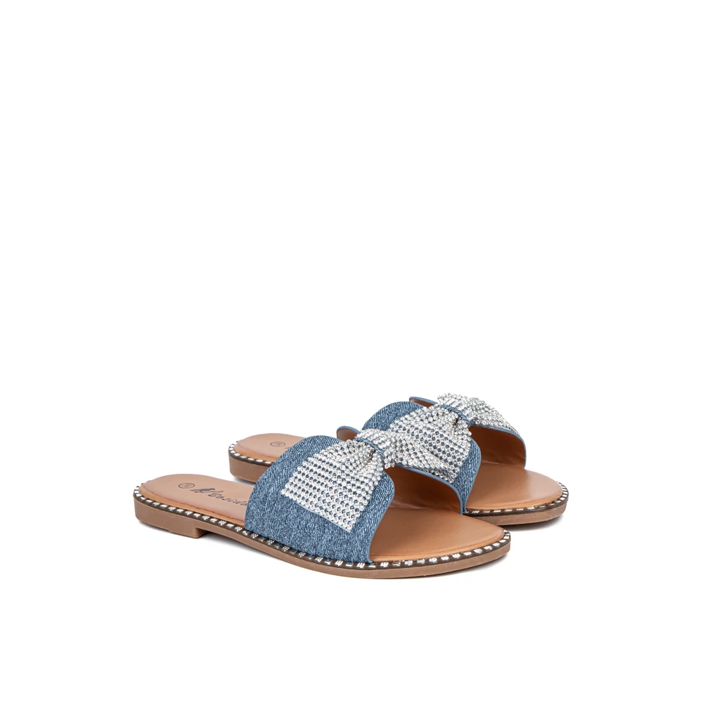 Bosido Farmerkék Női Papucs Strasszköves Masnival