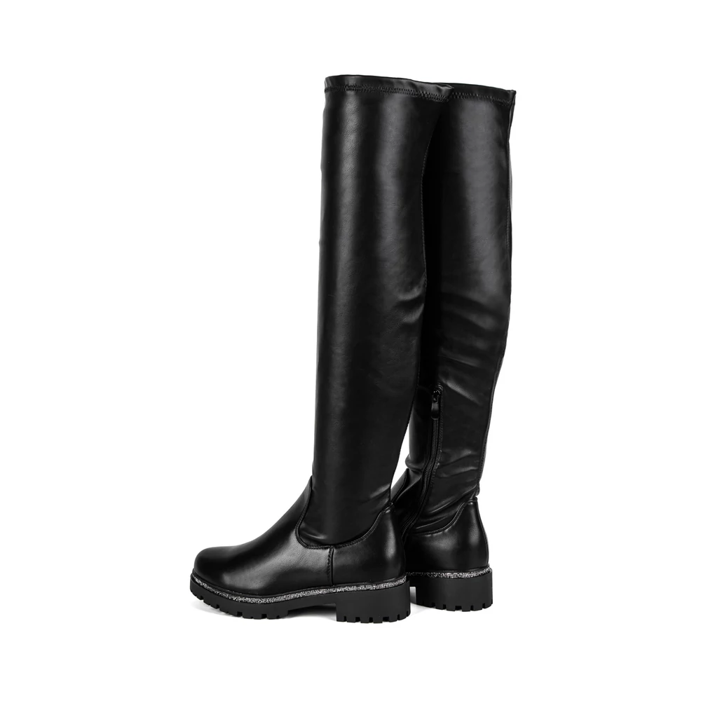 Yesmile Fekete Műbőr Platform Talpú Magasszárú Csizma