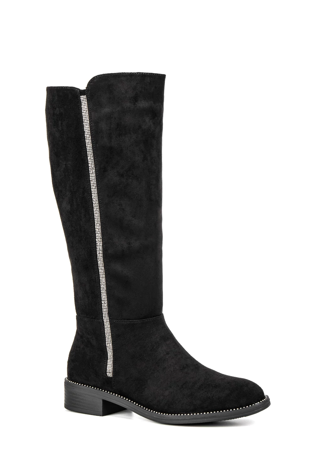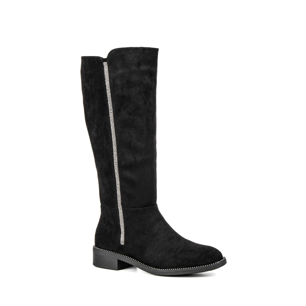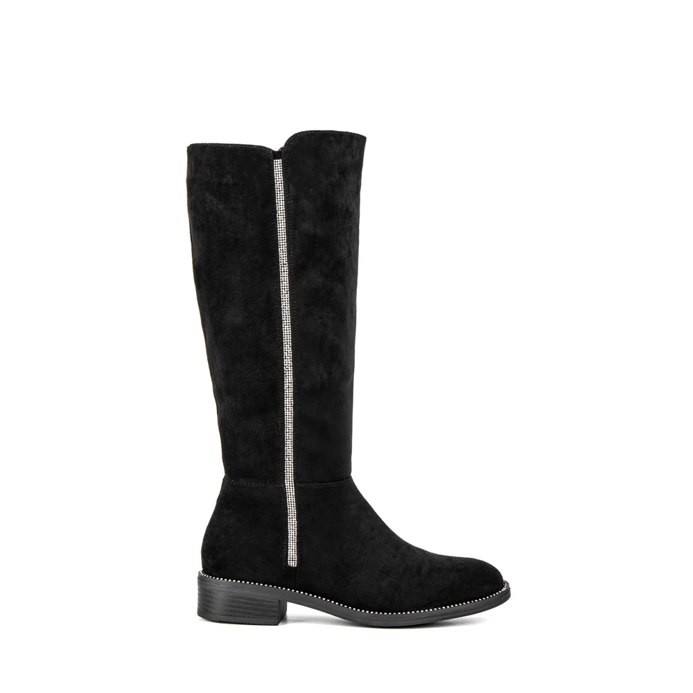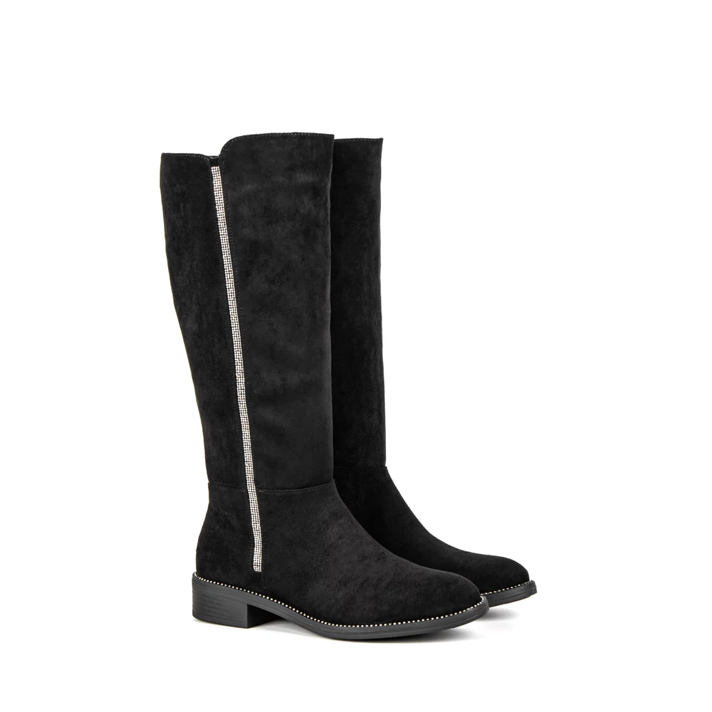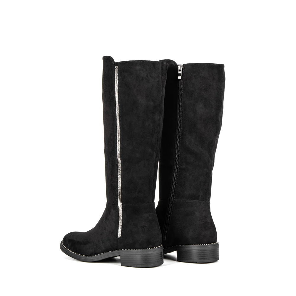 Bosido Fekete Művelúr Csizma Strasszkövekkel