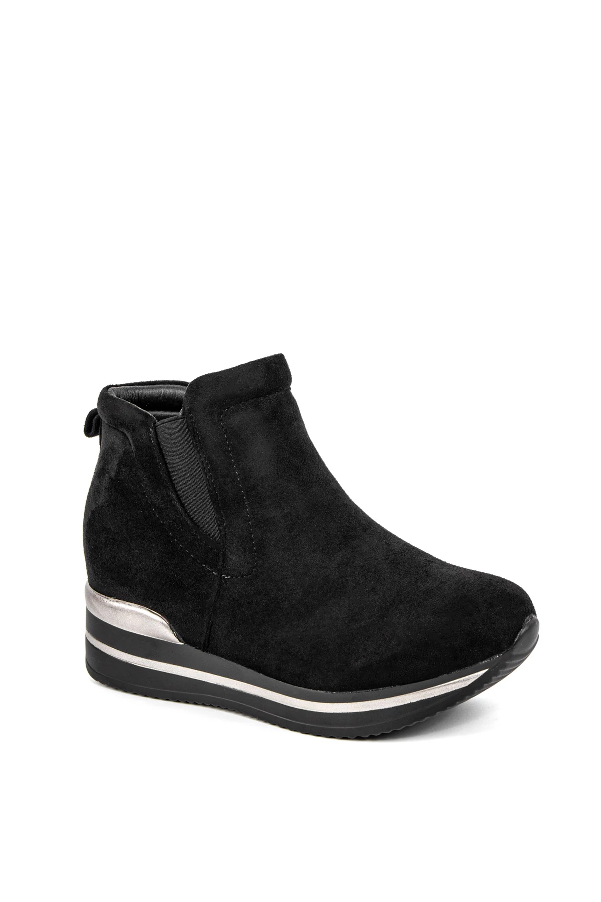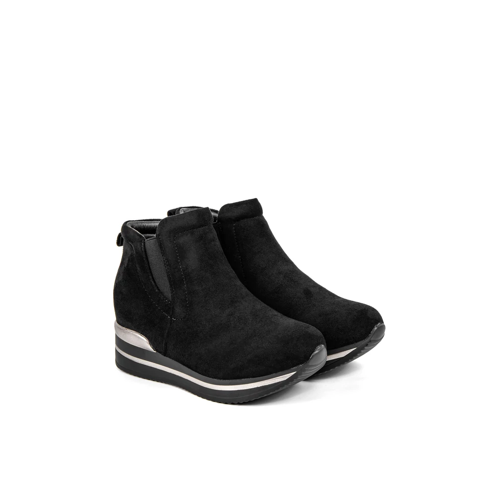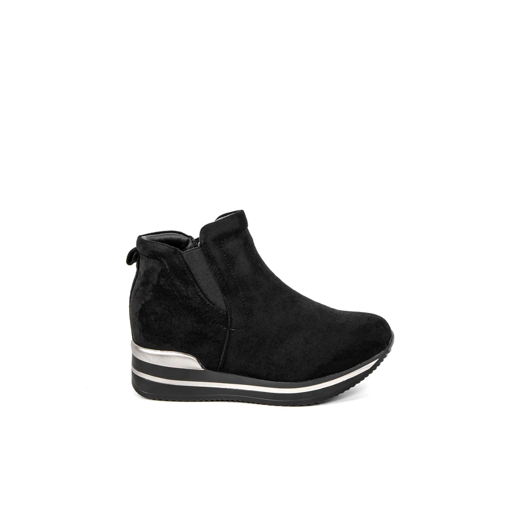 Bosido Fekete Műnubuk Bokacsizma Csipkés Szárral És Strasszköves Csattal