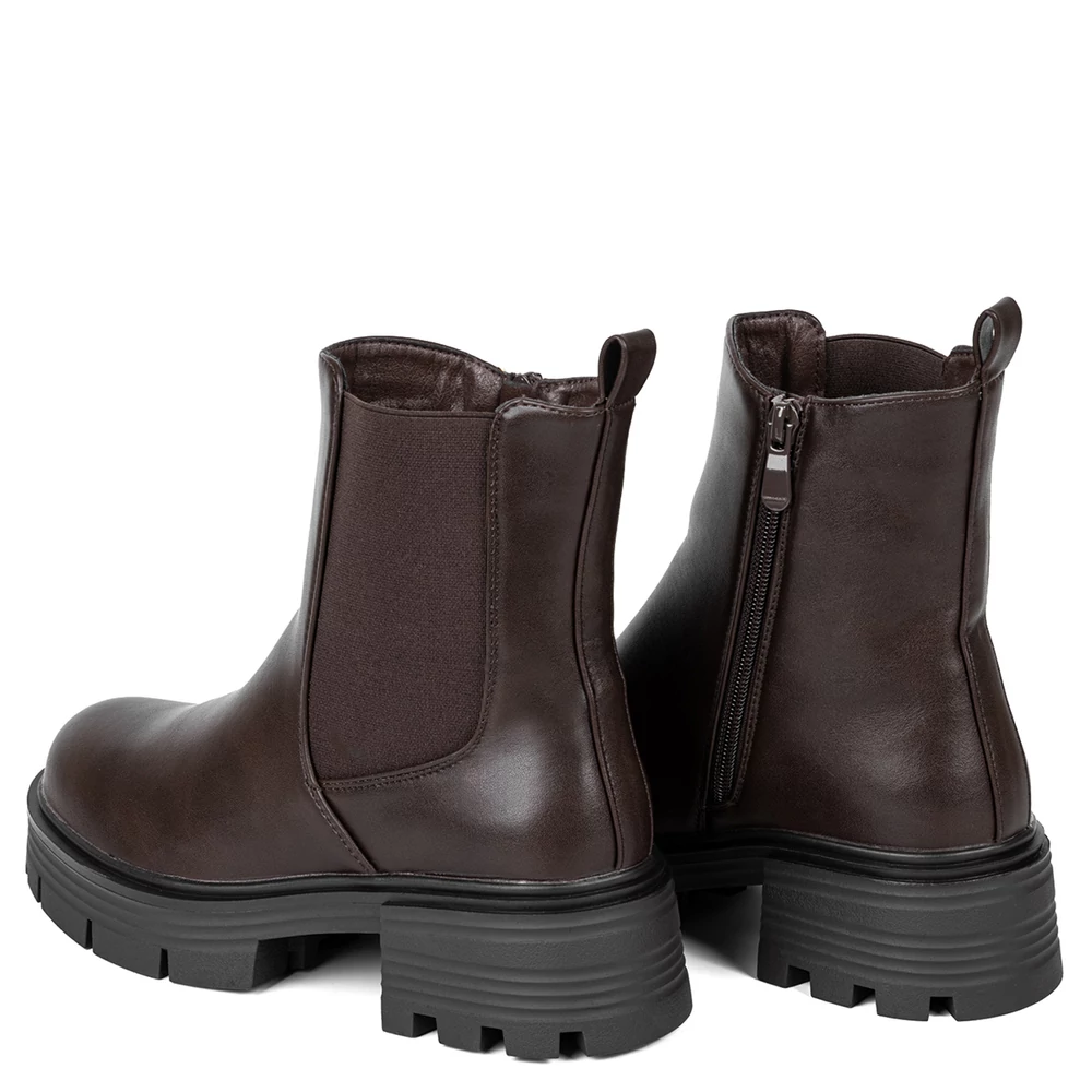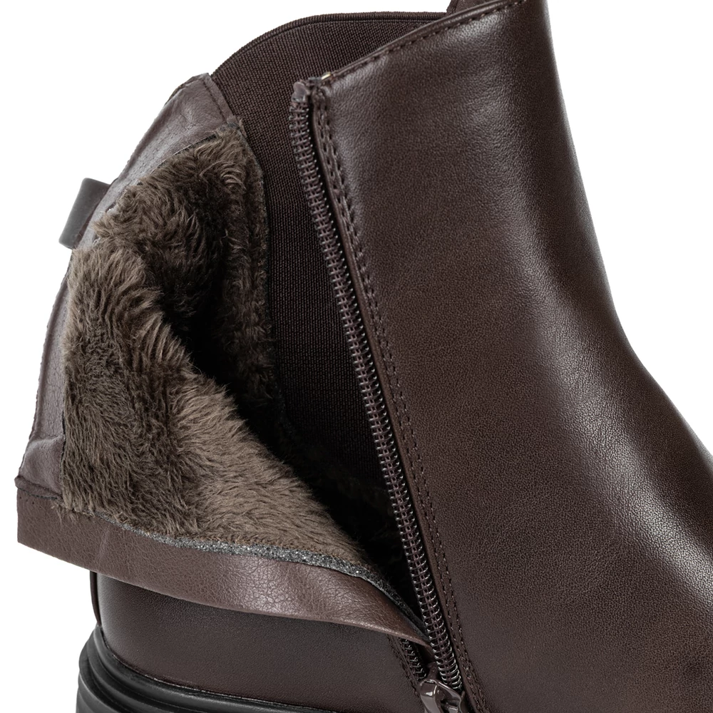 Ez a vastag talpú, bélelt bokacsizma ideális választás a hidegebb napokra. A cipzáras kialakítás és az oldalsó gumírozás egyszerre biztosítanak kényelmet és gyors felvételt. A belső meleg bélés gondoskodik a komfortos viseletről, míg a masszív, recés talp stabil lépéseket nyújt még csúszós felületen is. Letisztult formája jól illeszkedik hétköznapi vagy sportosabb szettekhez. Remek választás azoknak, akik egy praktikus, ugyanakkor karakteres megjelenésű téli lábbelit keresnek.
