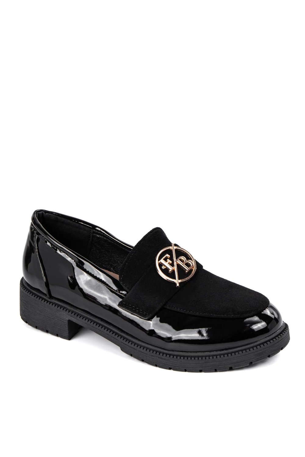 Yesmile Lakk Fekete Blokksarkú Loafer