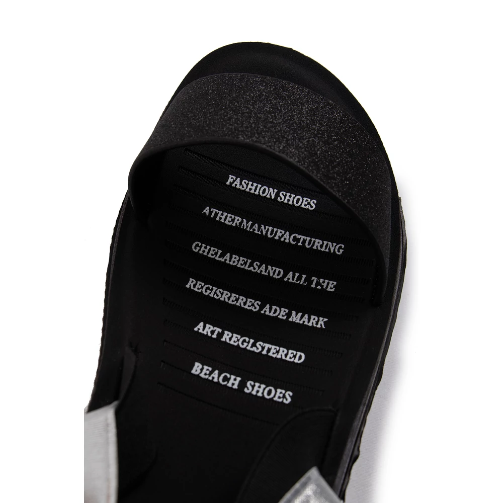 Egyszerű és letisztult gumipántos lapostalpú szandál, amely enyhén emelt sarokrésszel rendelkezik, így segíti a lábak hosszan tartó kényelmét.