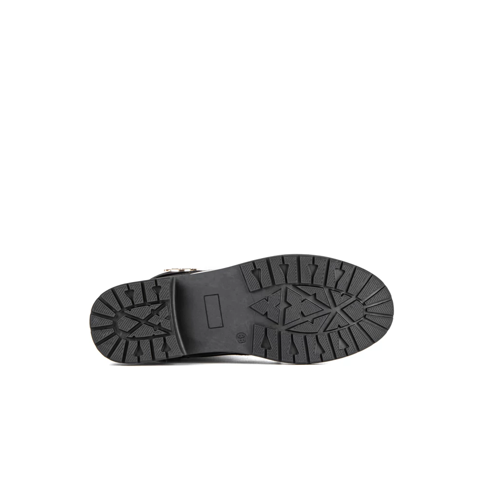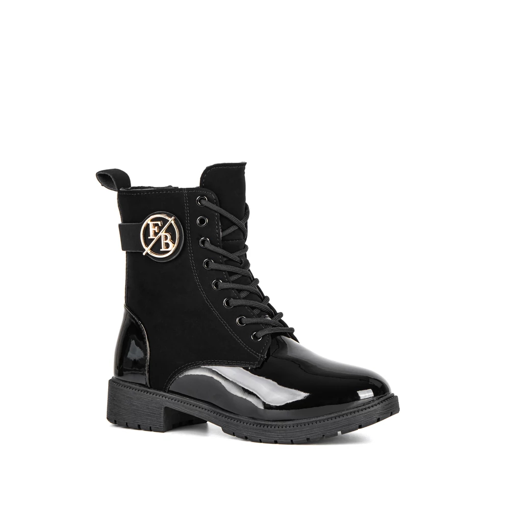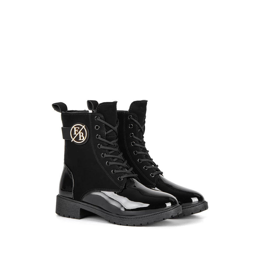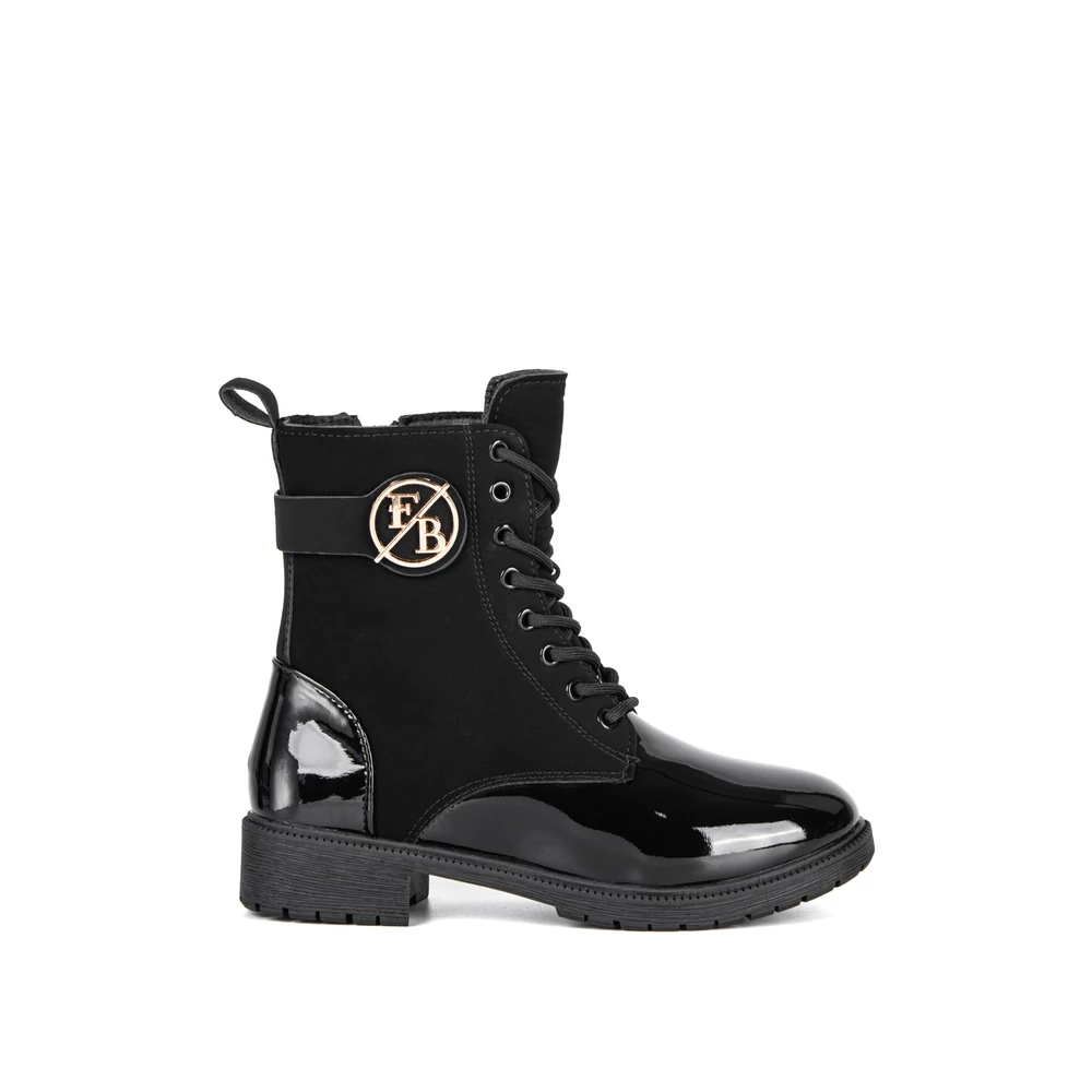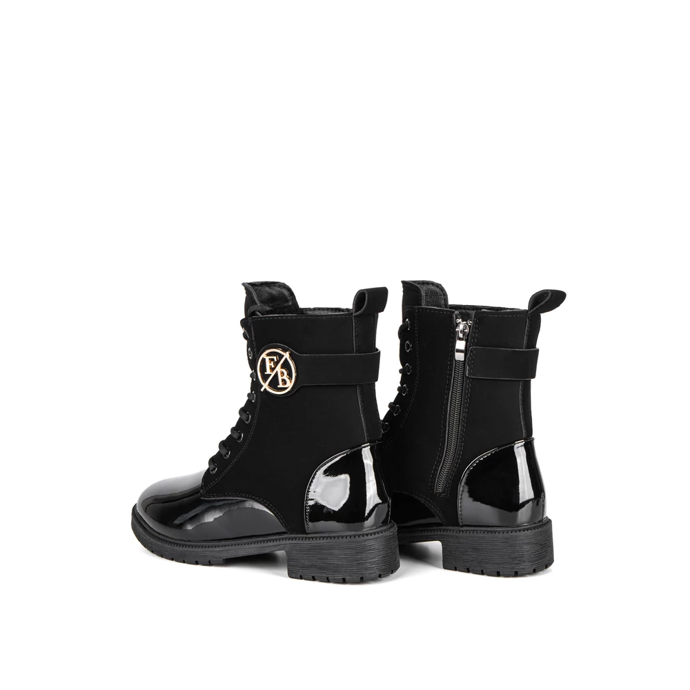 Klasszikus megjelenésű bokacsizma, nubuk és lakk külsővel. Oldalán található cipzárnak köszönhetően fel és levétele rendkívül egyszerű. Talprésze dizájnos kialakítású, gumírozott, hogy a csúszósabb felületeken is biztonságosan viselhessük.