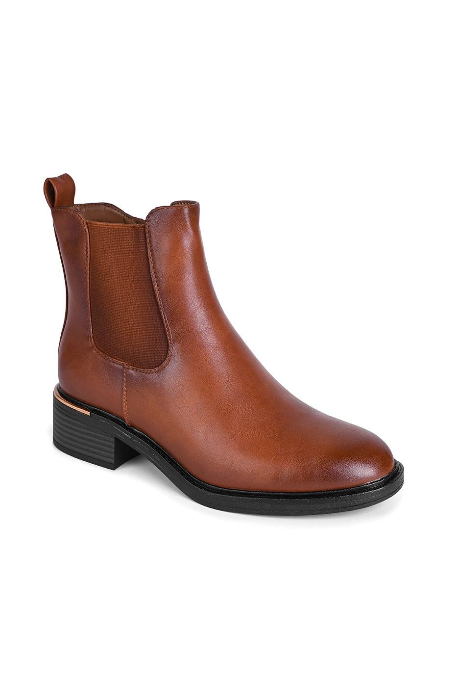 Ez az enyhén bélelt műbőr bokacsizma elegáns megjelenést és kényelmes viseletet kínál hidegebb napokra.