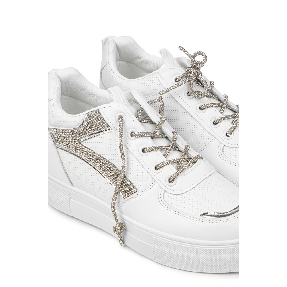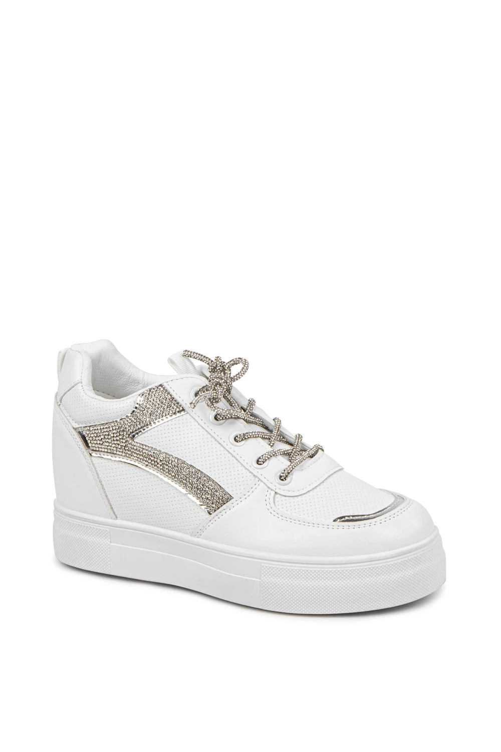 Comer Fehér Rejtett Magassarkú Sneaker Strasszköves Díszítéssel