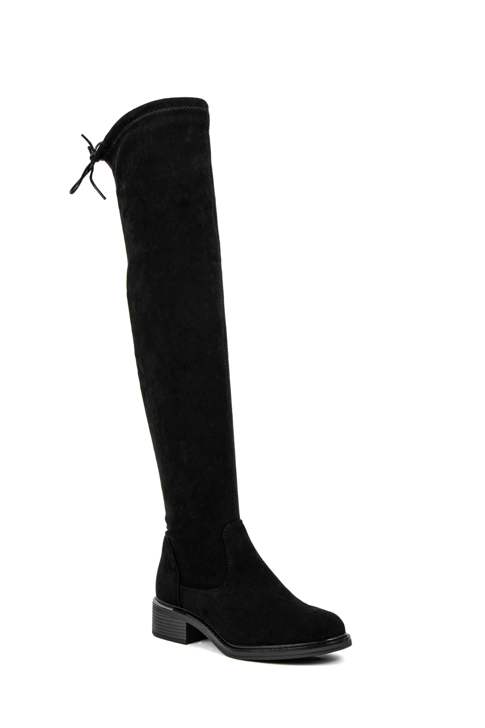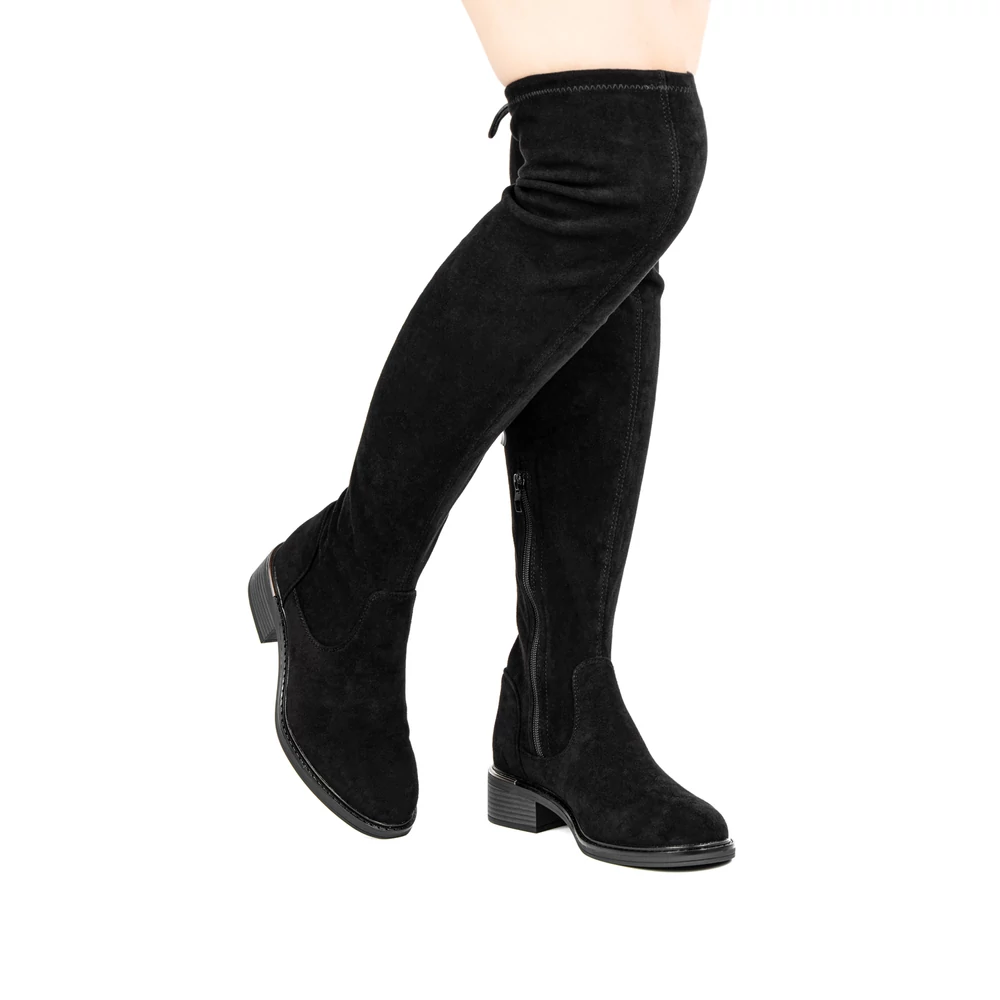 Egyszerű kialakítású, enyhén bélelt magasszárú csizma a fagyos, téli időszakra.