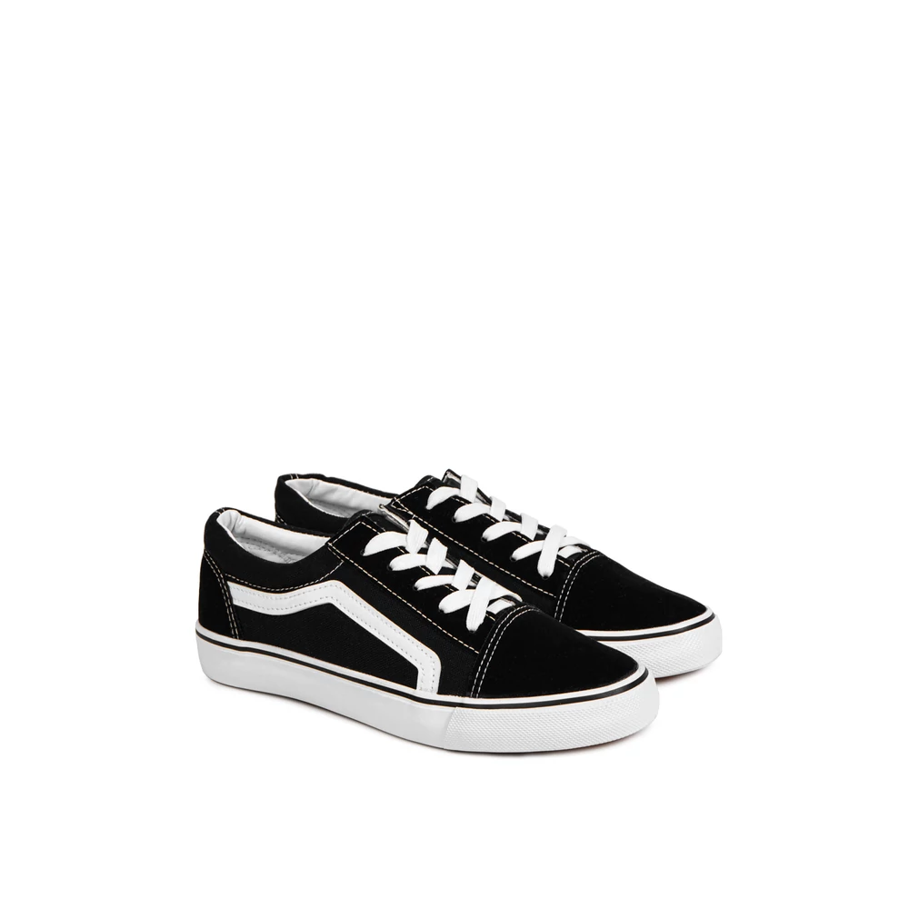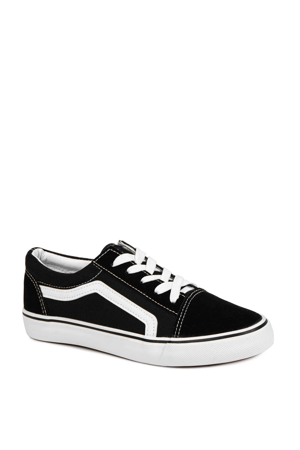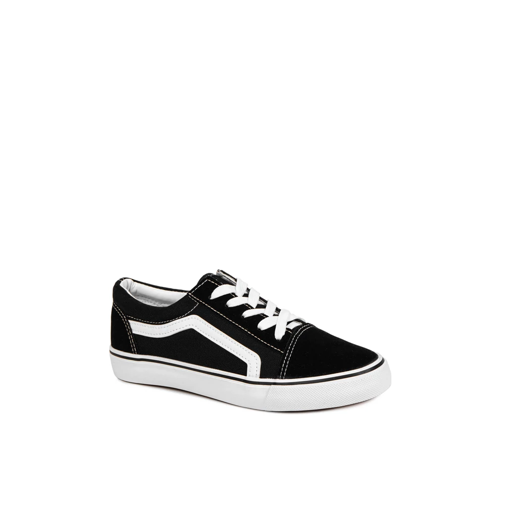 Sportos stílusú, férfi cipő oldalán fehér csíkkal. Elegáns, egyben sportos megjelenésű, tökéletes cipő a mindennapok során során.