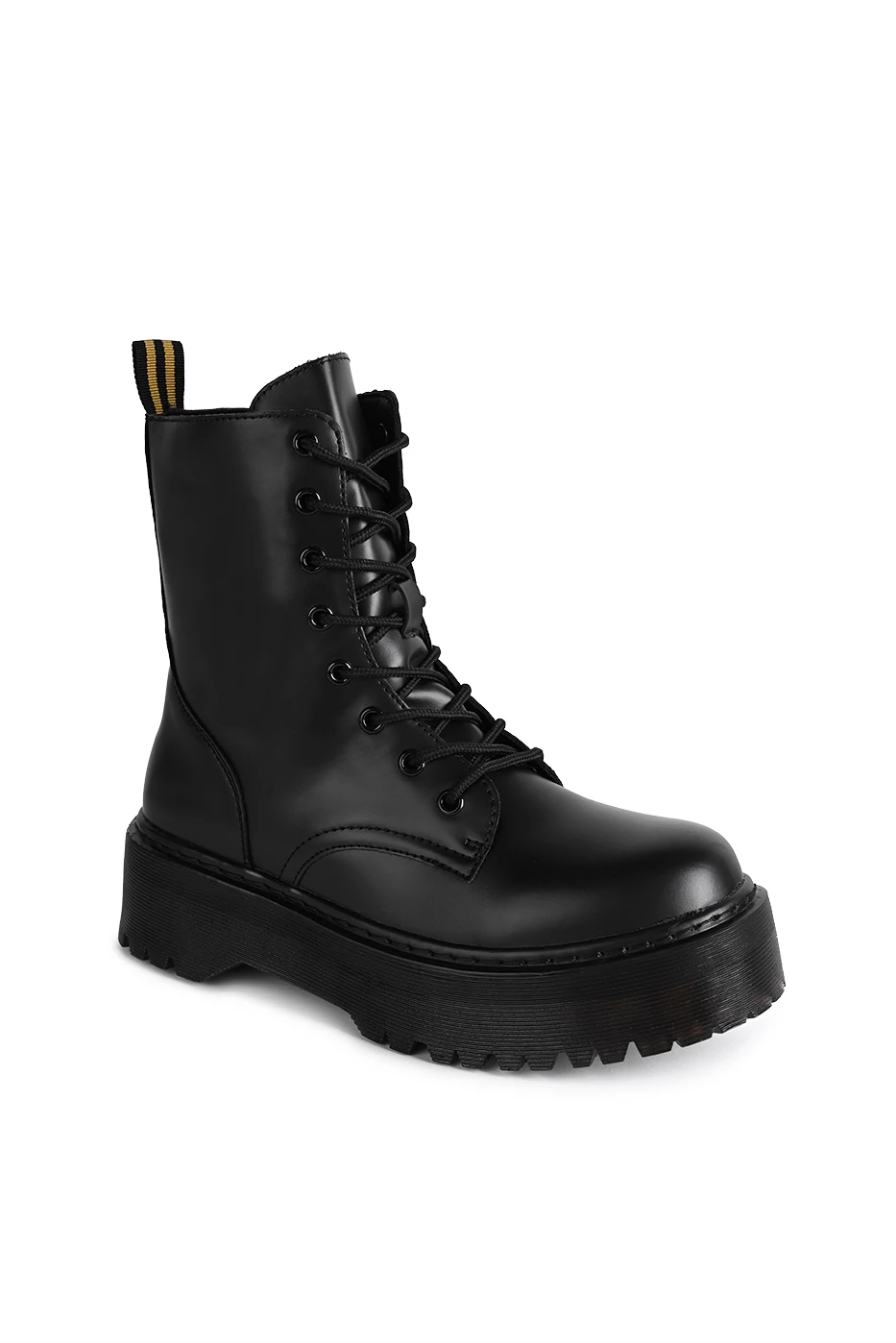 Divatos műbőr bakancs, melynek fel és levételét igazán könnyűvé teszi az oldalán húzódó cipzár.