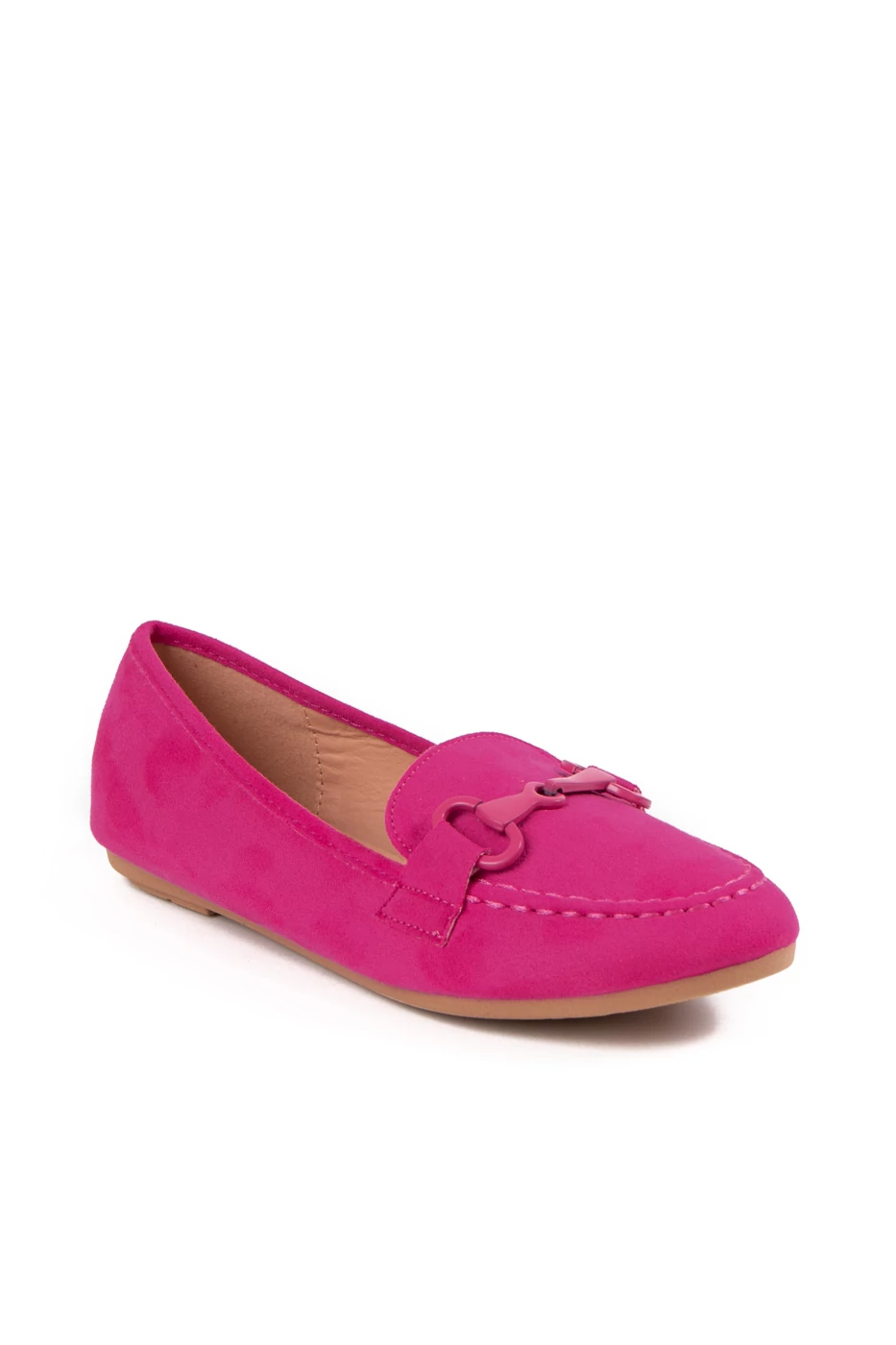 Egyszínű Sötét Pink Művelúr Balerina Cipő Csattal Díszítve