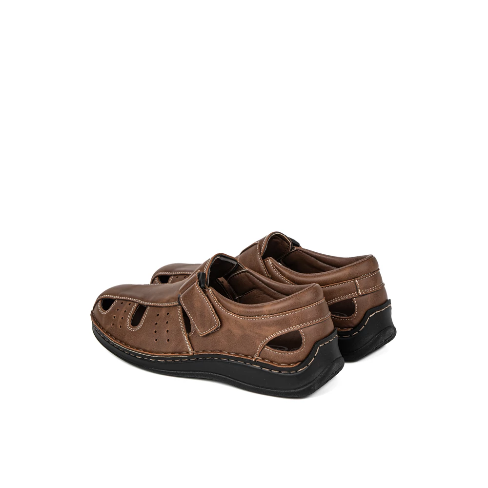 Kiváló minőségű, stílusos férfi szandál. Tartós és strapabíró anyagból készült. A szandál egy tépőzár segítségével állítható méretre. Oldalán jól szellőző nyílások találhatók. Tökéletes hétköznapi viseletre.