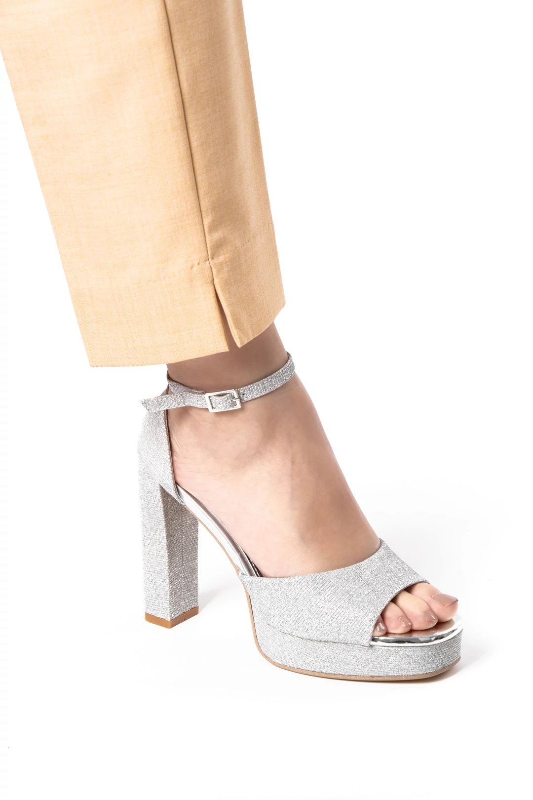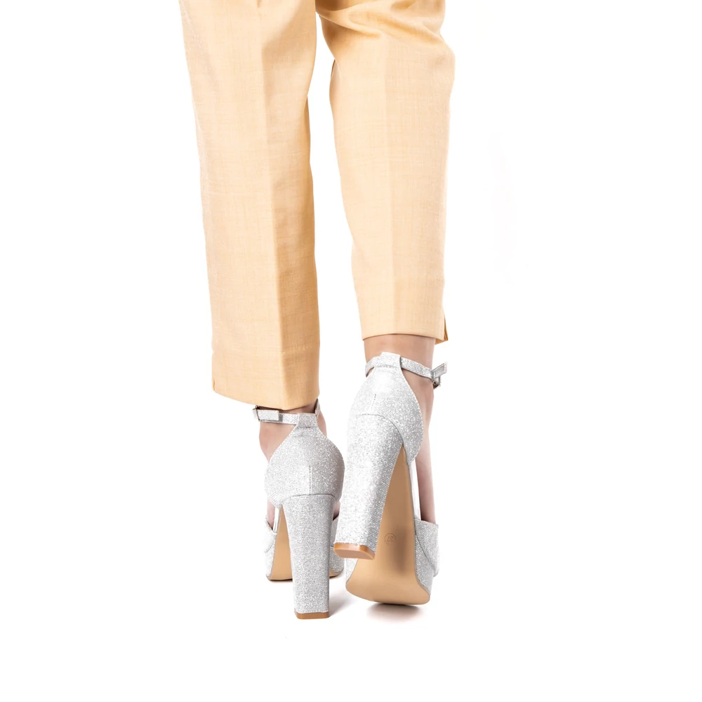 Ezüst Csillogó Bokapántos Szandál Blokksarokkal