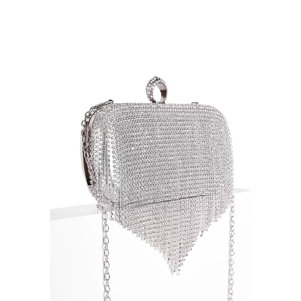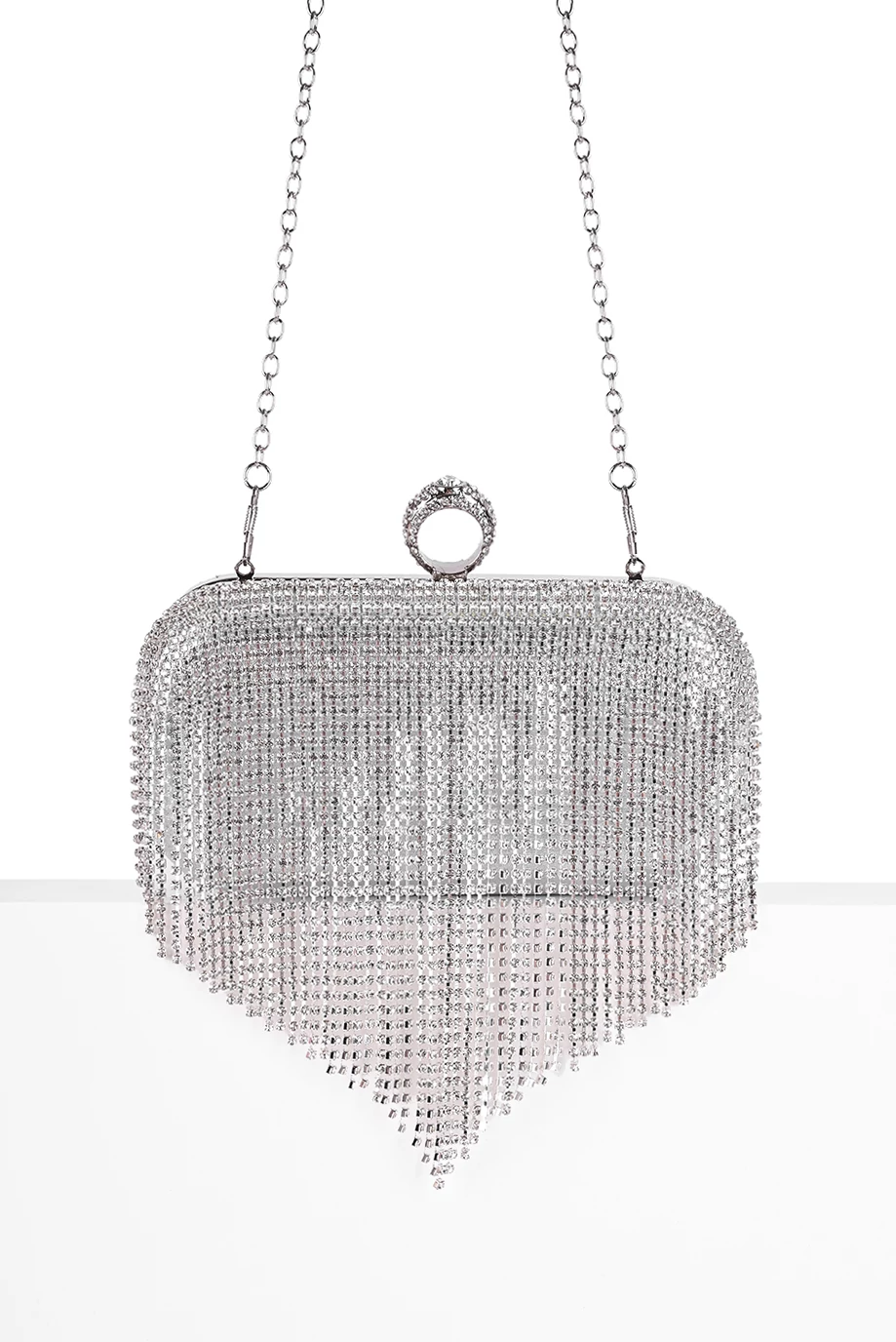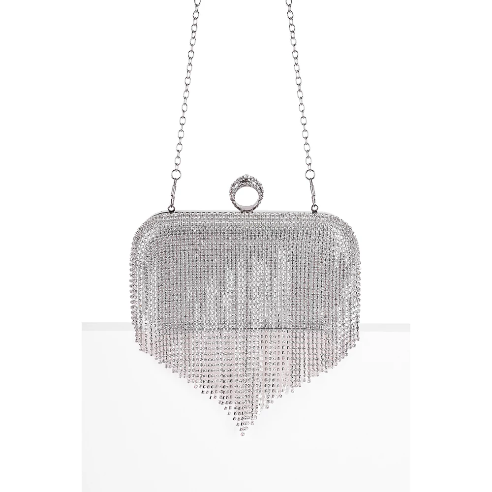 Elegáns és trendi strasszköves party/alkalmi táska, amellyel nem csak kitűnsz a tömegből, de bele is pakolhatod a kisebb értékeidet, mint telefon, pénz és zsebkendő. Egyterű belsejét egy gyűrűnek kinéző patenttal lehet nyitni. A táskát a hozzá tartozó vékony lánccal vállon is viselheted, vagy akár a gyűrűt is felhúzhatod az ujjadra, és a táskát a markodban is kényelmesen hordozhatod.