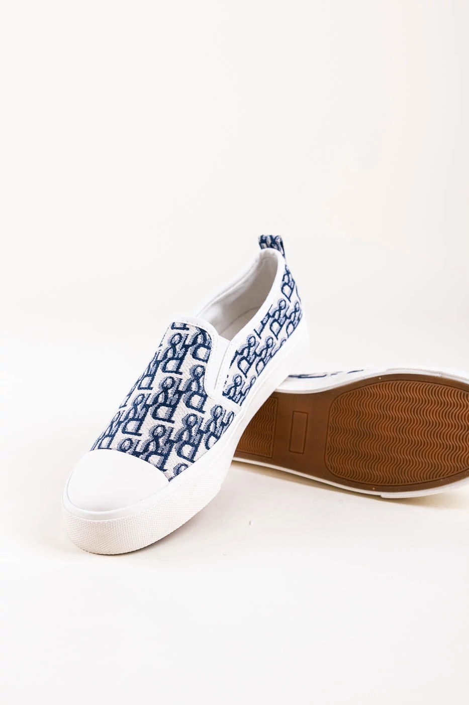 Fekete fehér talpú belebújós slip-on félcipő