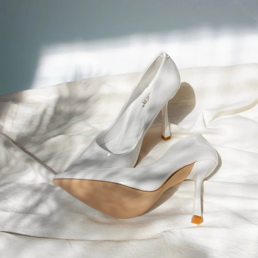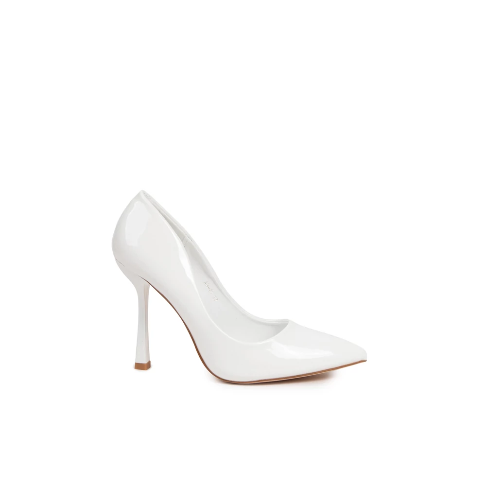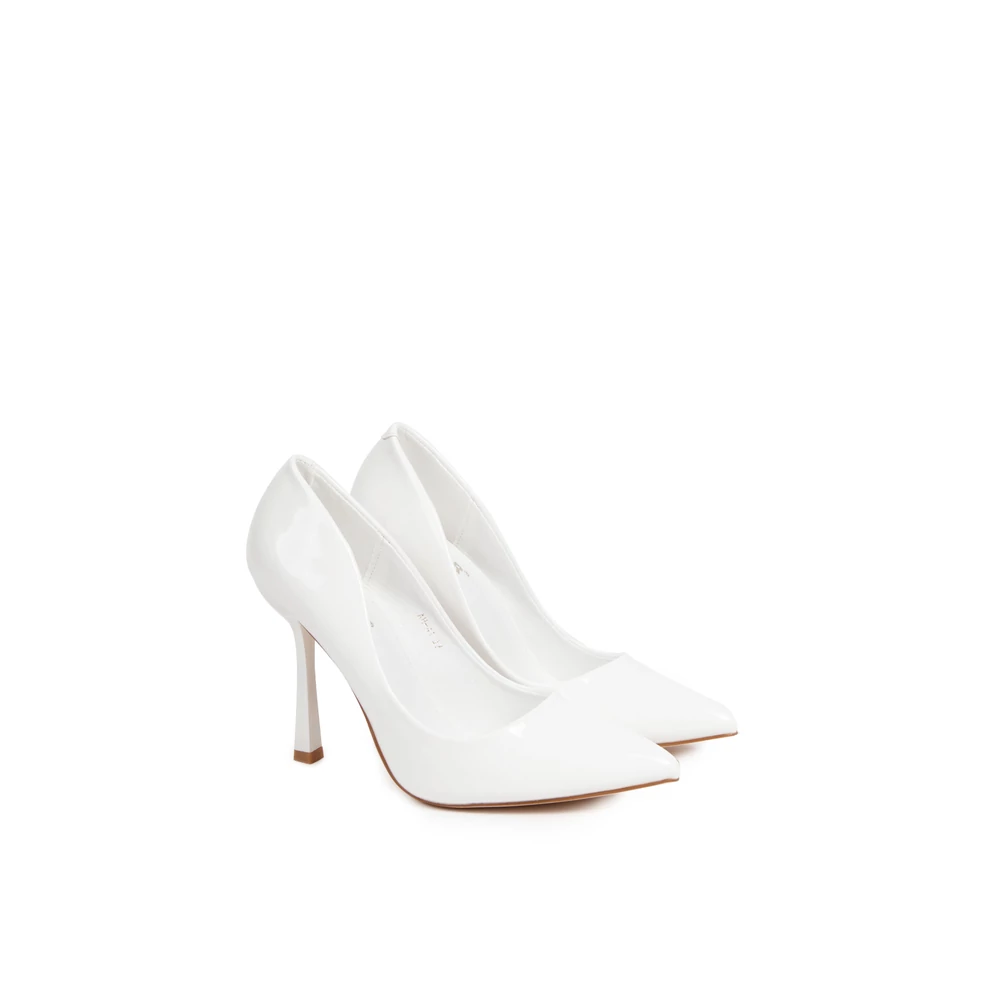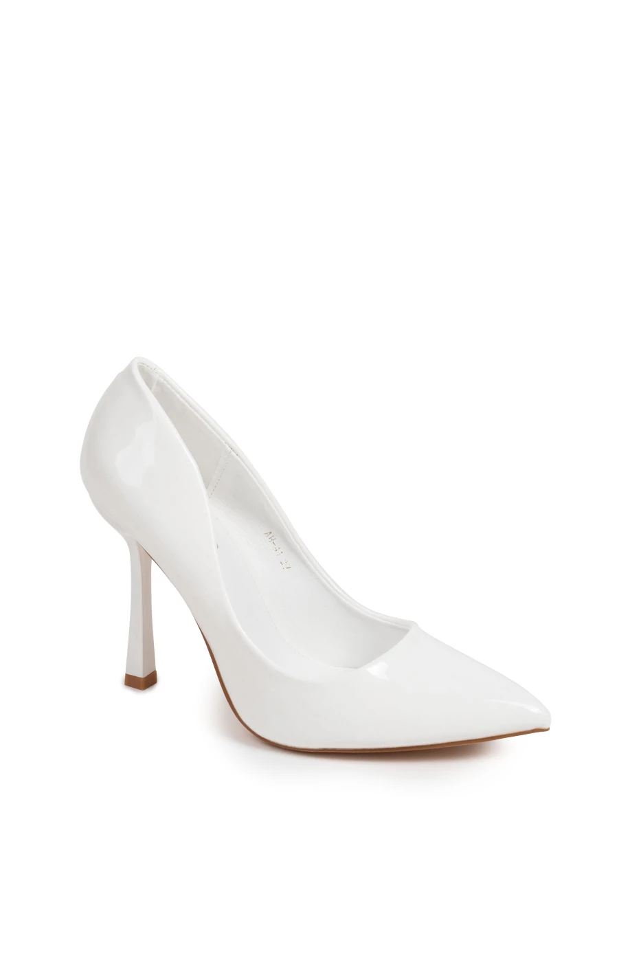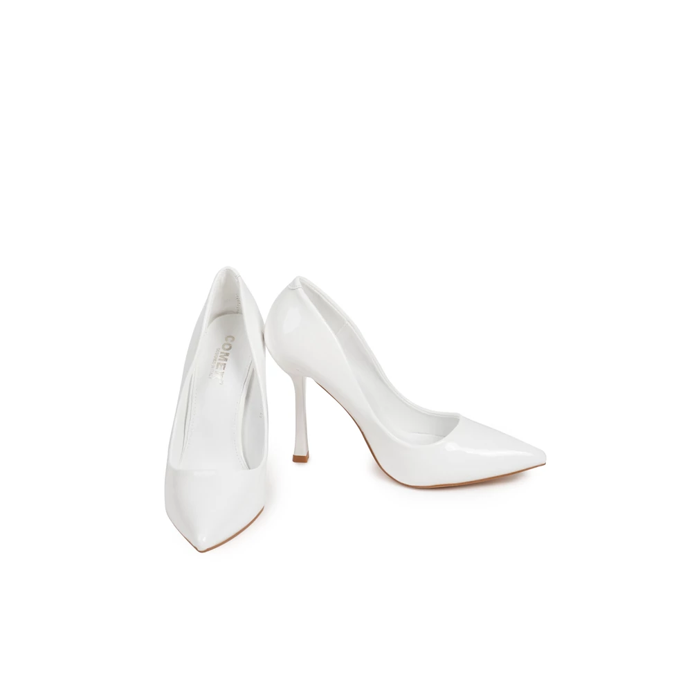 Fehér Lakkozott Alkalmi Cipő Extravagáns Tűsarokkal