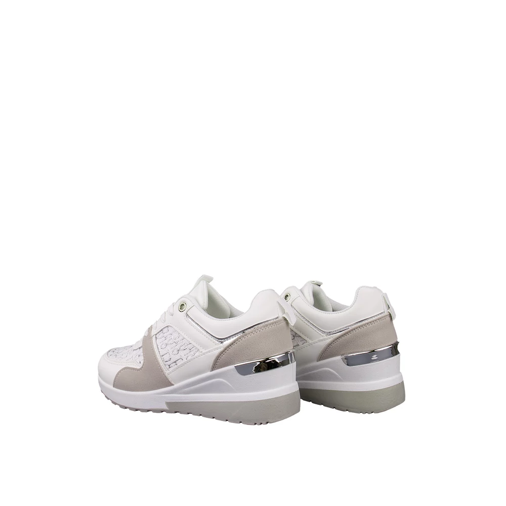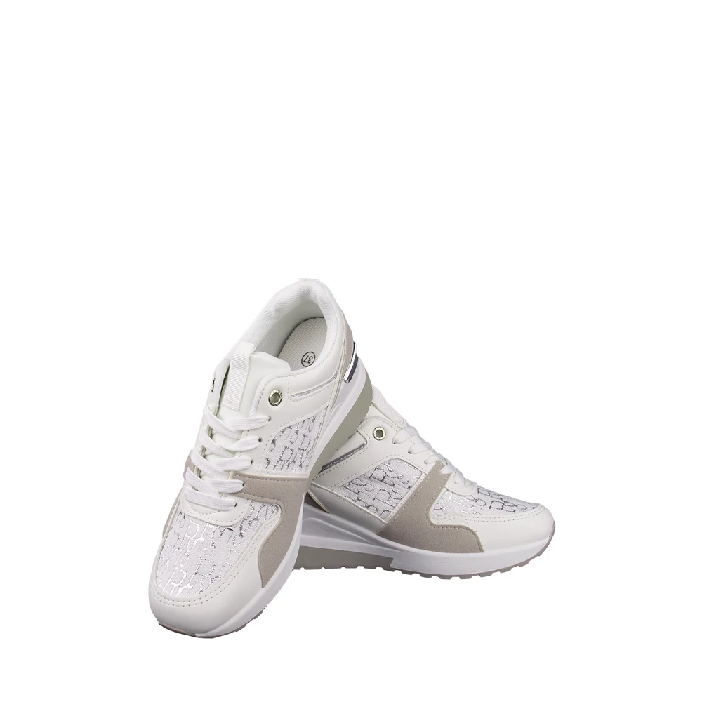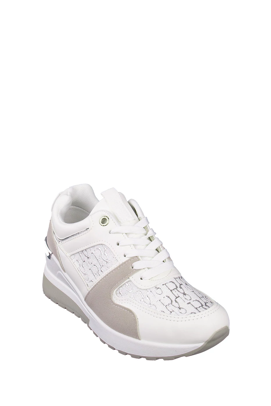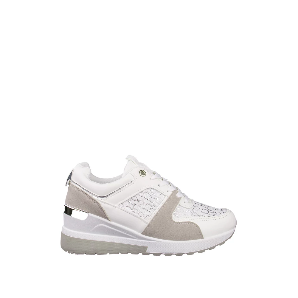 Fehér-ezüst, csillogó mintás sneaker a tavaszi napokra, mely tökéletes kényelmet nyújt a viselete során.