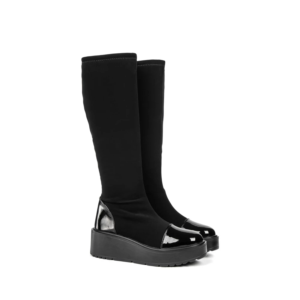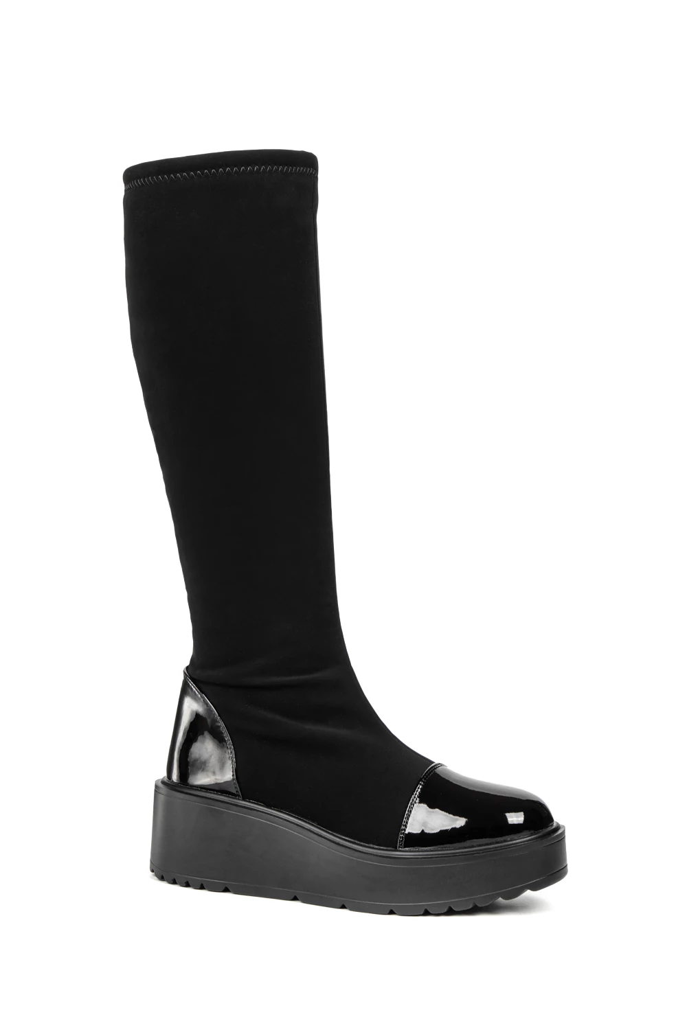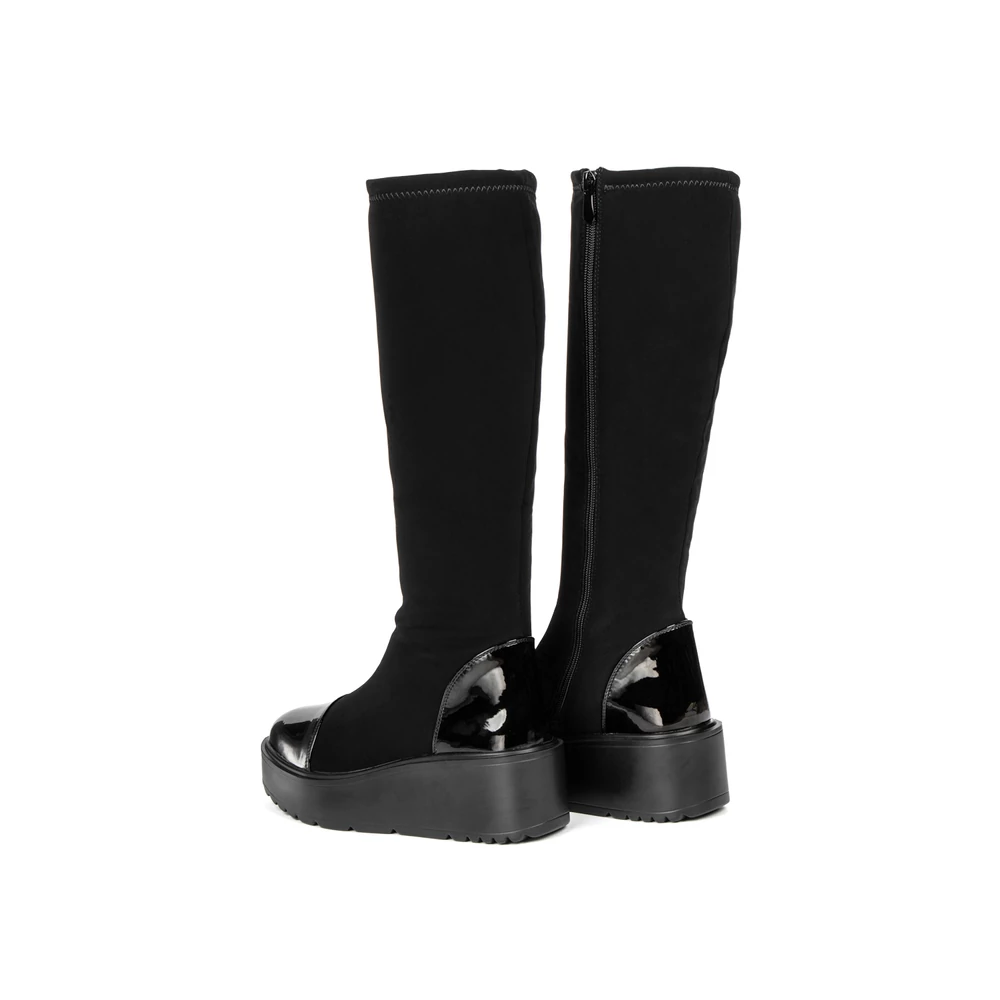 Yesmile Fekete Műbőr Platform Talpú Magasszárú Csizma