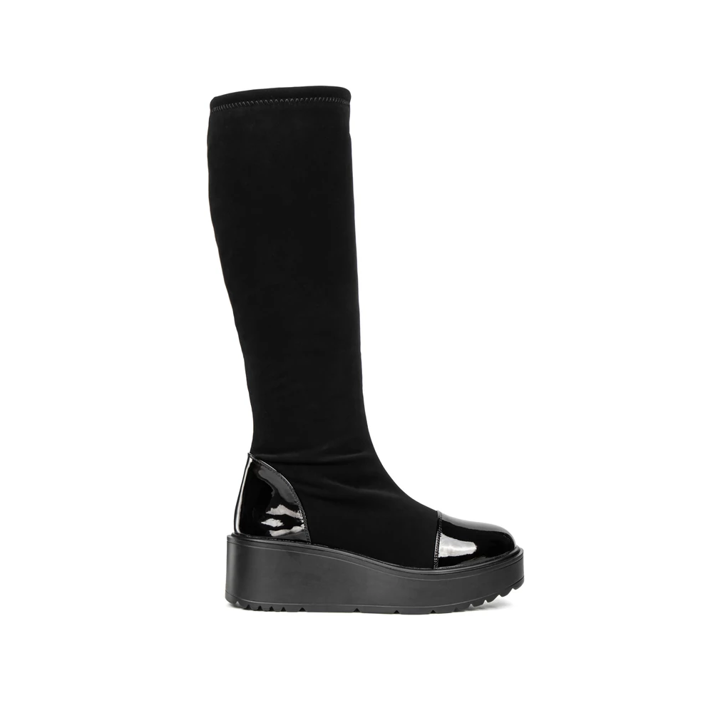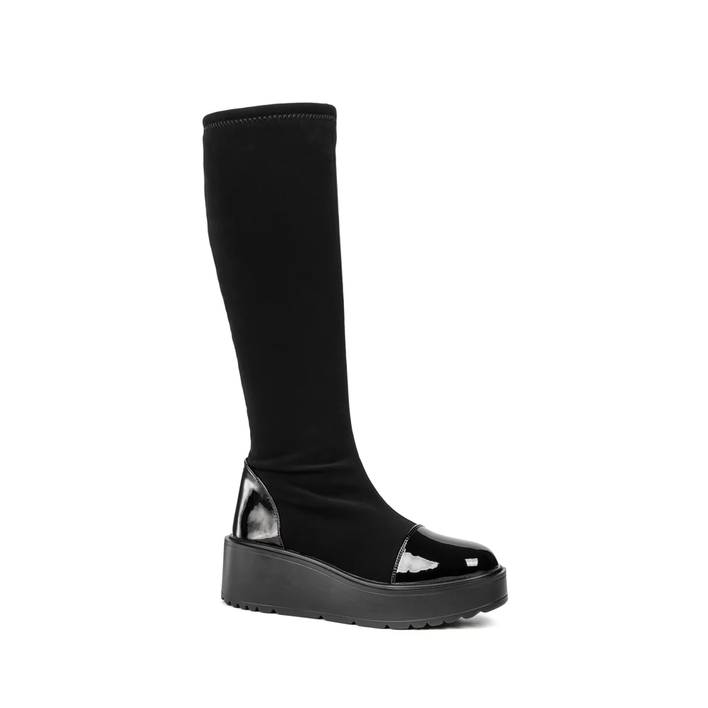 Bosido Fekete Magasszárú Csizma Gumis Szárral