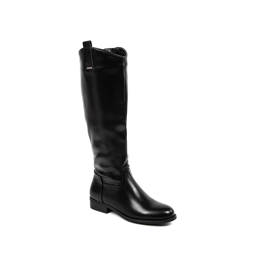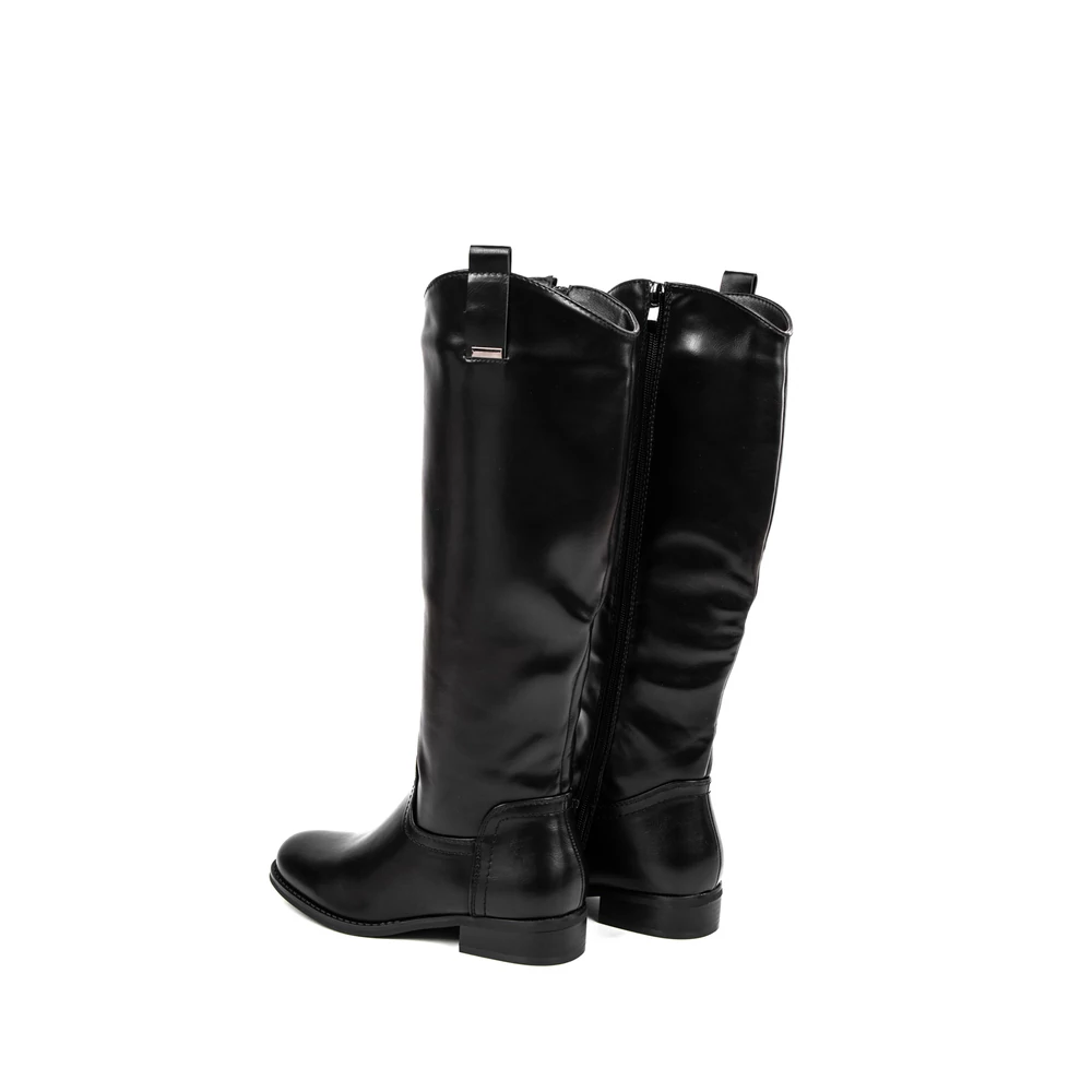 Egyszerű kialakítású, magasszárú csizma az átmeneti időszakra.