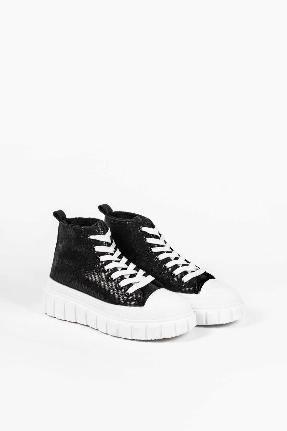 Extrém megjelenésű csillogó anyagból készült tornacipő, platformos talppal, mely többféle színben is megtalálható nálunk.