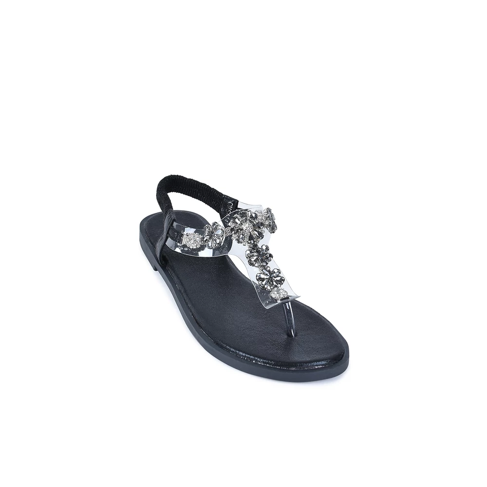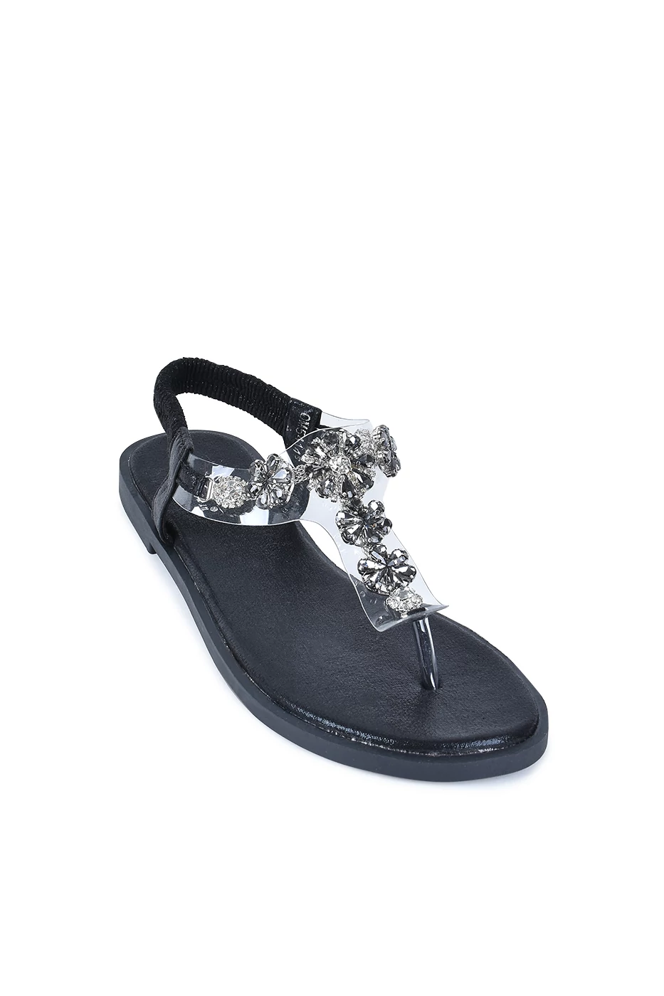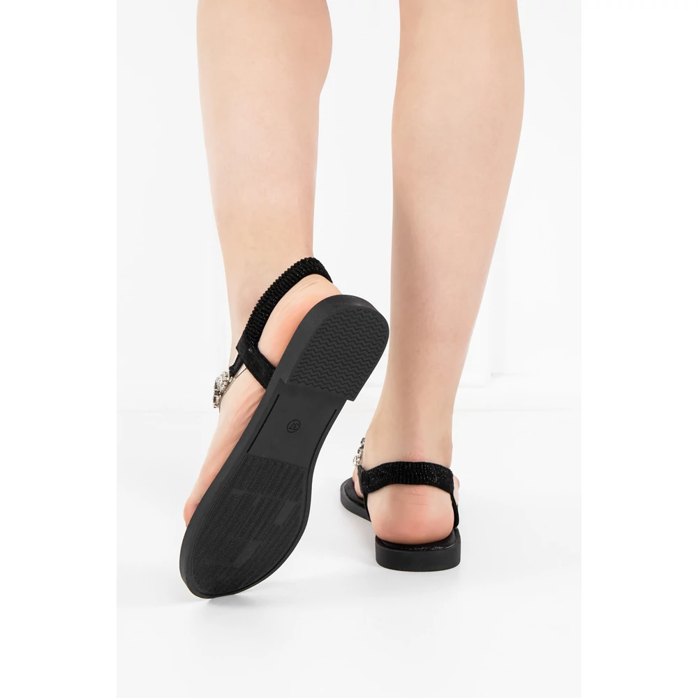 Tree Fekete Keresztpántos Művelúr Szandál Strasszköves Díszítéssel