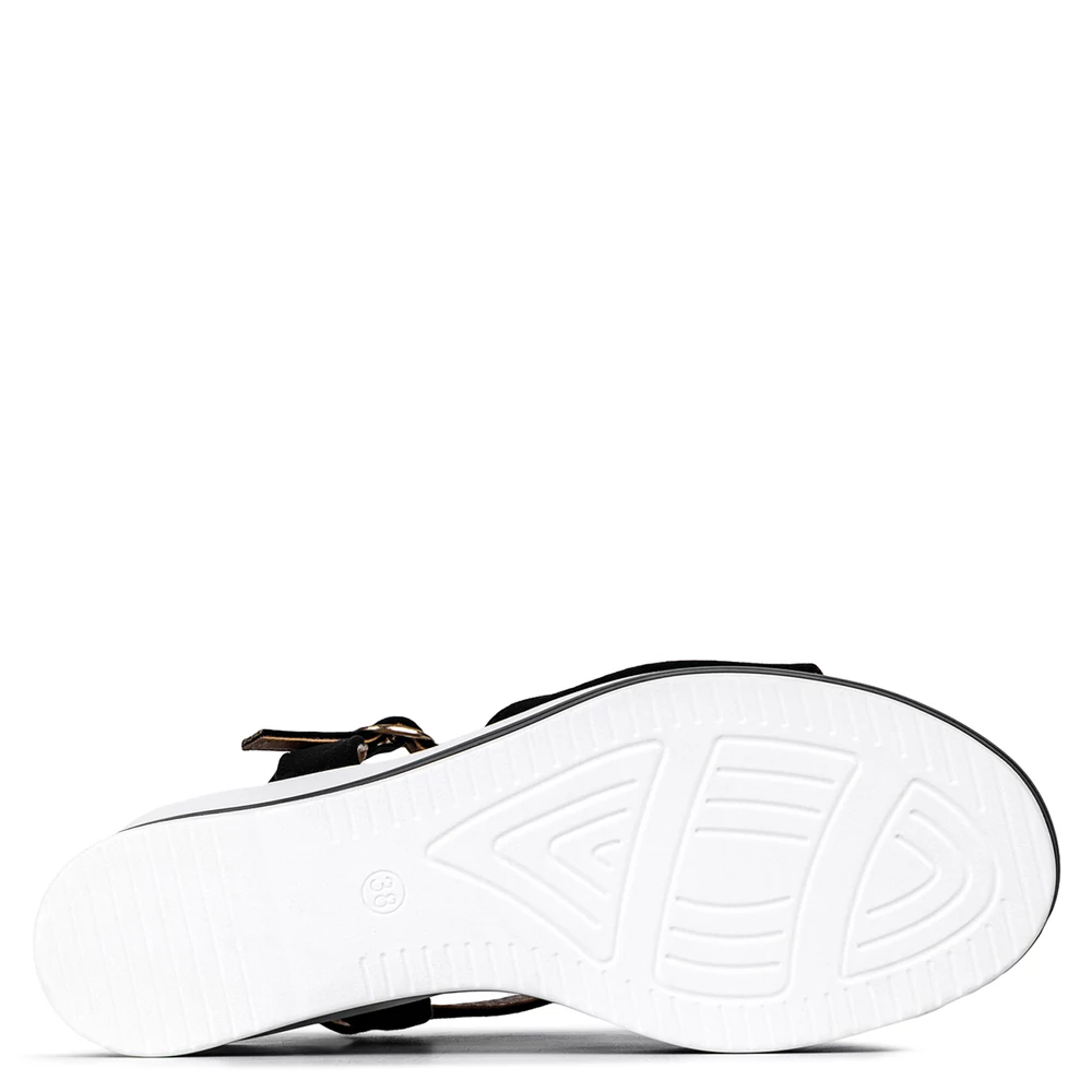 Ez a női szandál a stílusos megjelenés és a mindennapi kényelem tökéletes kombinációja. A telitalp kialakításnak köszönhetően magabiztos járást biztosít, miközben megőrzi a nőies eleganciát. Kialakítása stabil tartást nyújt, így ideális választás hosszabb sétákhoz vagy egész napos viselethez is. A lábfejet jól tartó pántok gondoskodnak a biztonságos illeszkedésről, míg a finom csillogás diszkréten emeli ki a megjelenést. Remekül párosítható nyári ruhákkal, szoknyákkal vagy akár egy lezserebb nadrágos összeállítással is. Kiváló választás mindennapi viseletre, de akár könnyed alkalmakra is megállja a helyét.