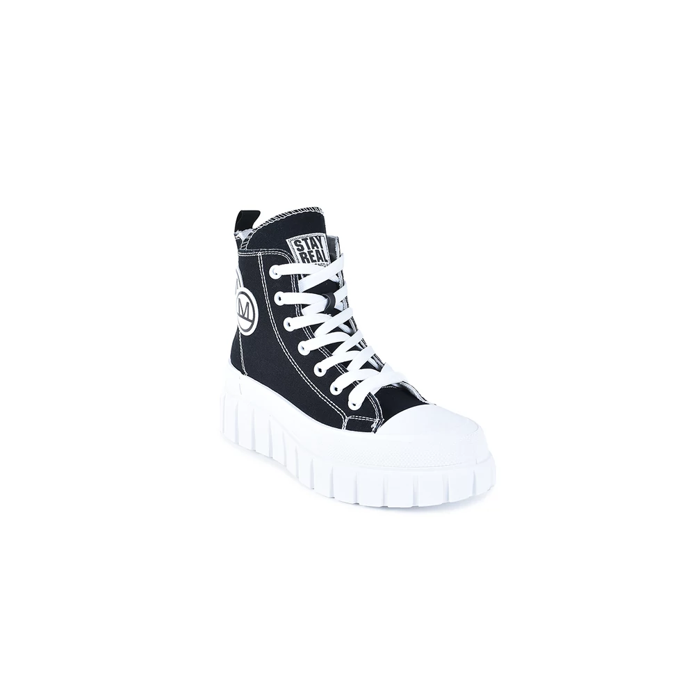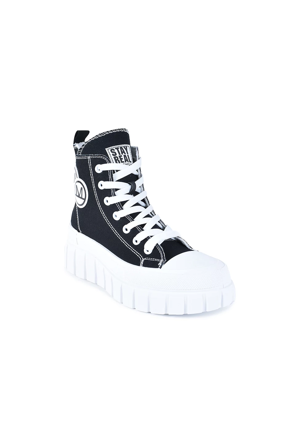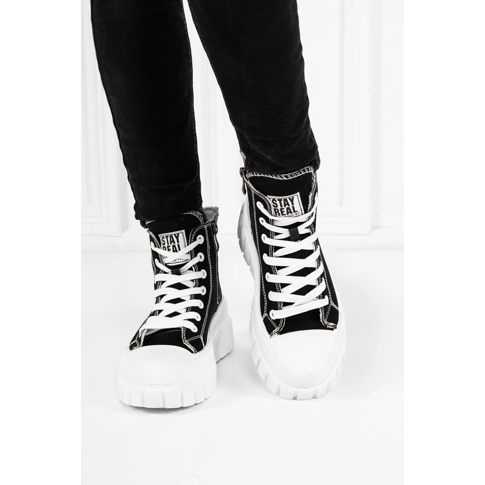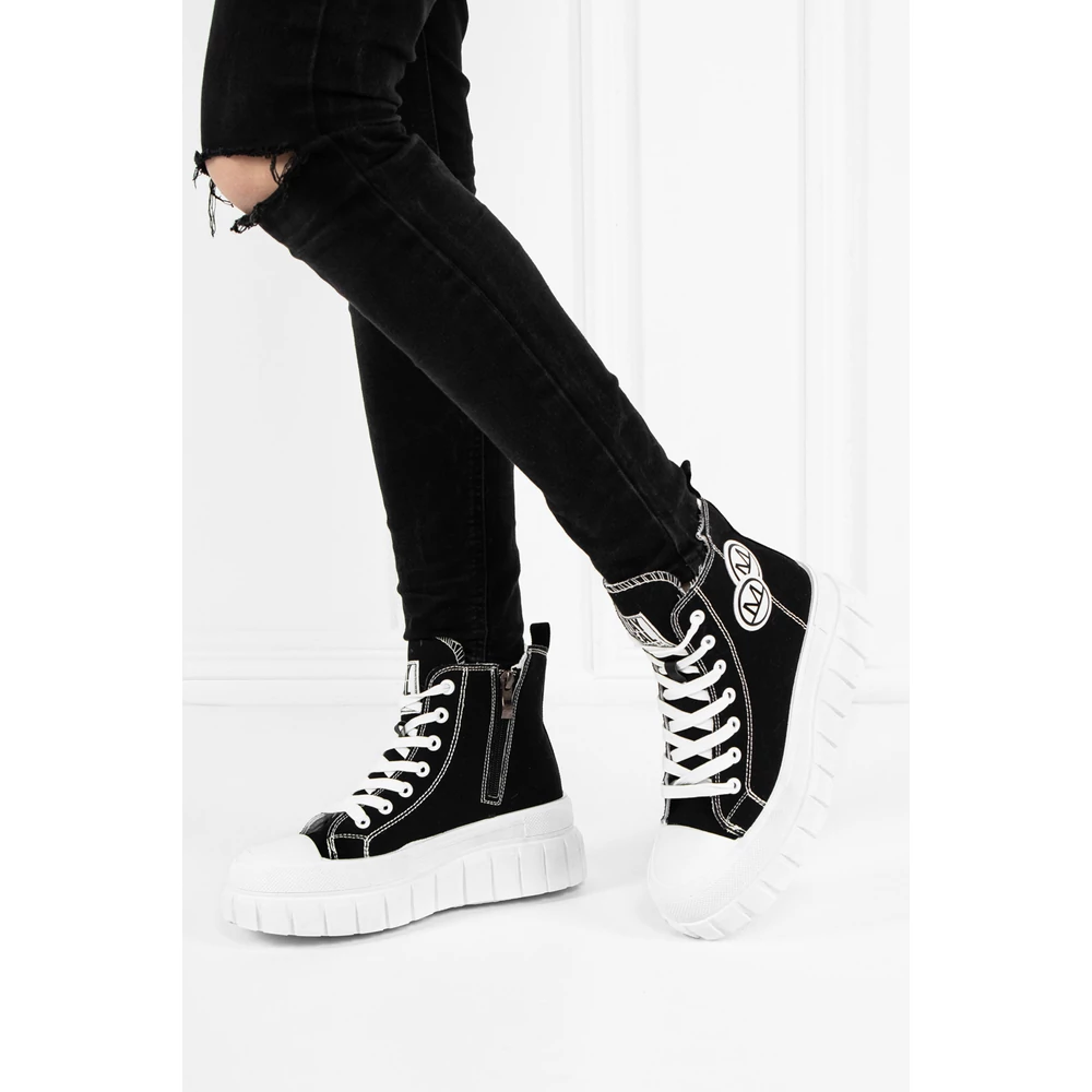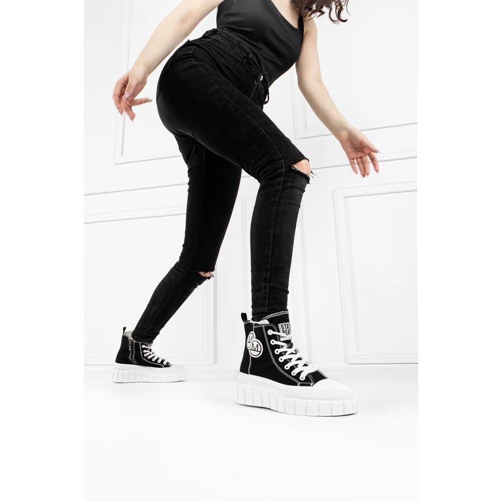 Fekete-Fehér Magasított Talpú Vászon Tornacipő
