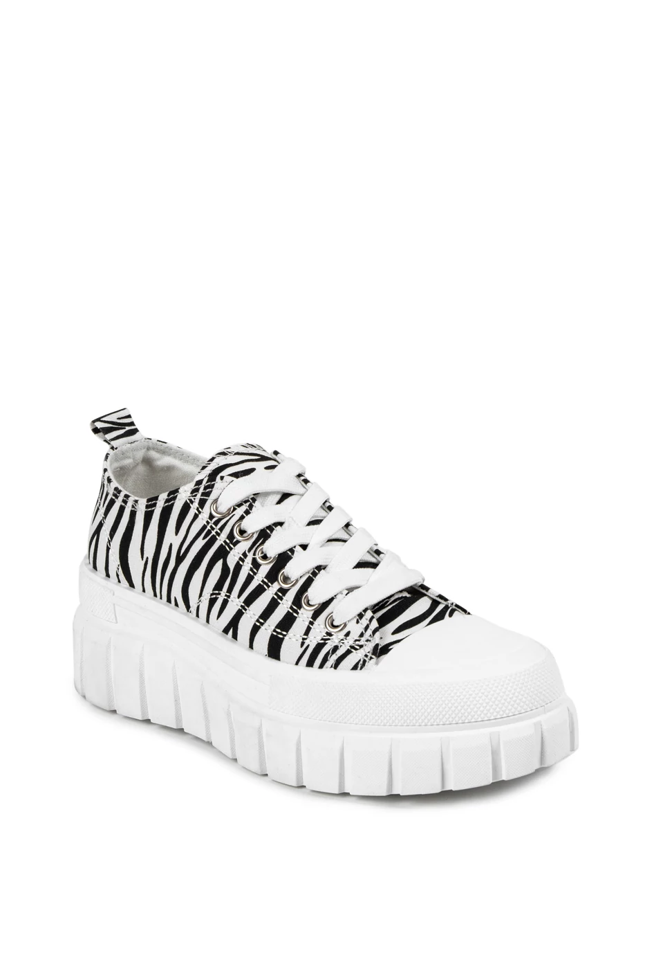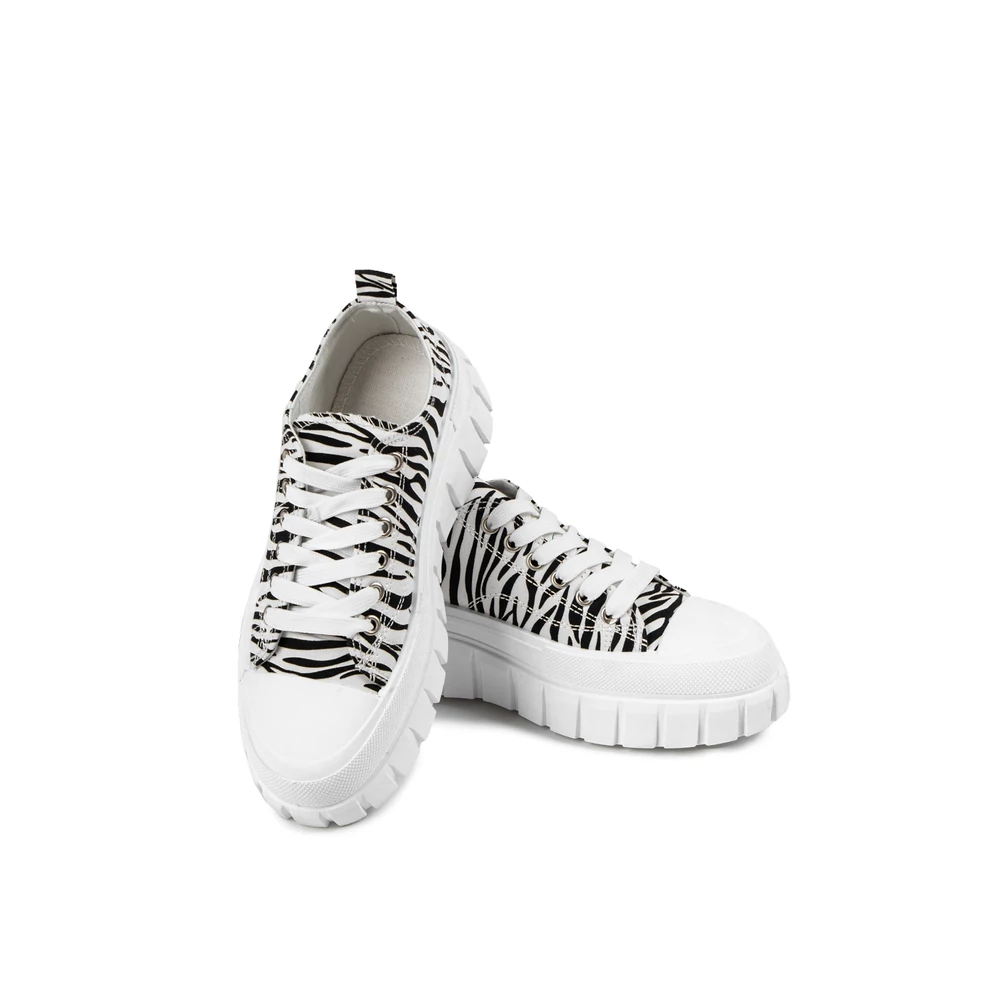 Fekete-Fehér Zebra Mintás Platformos Talpú Vászon Tornacipő