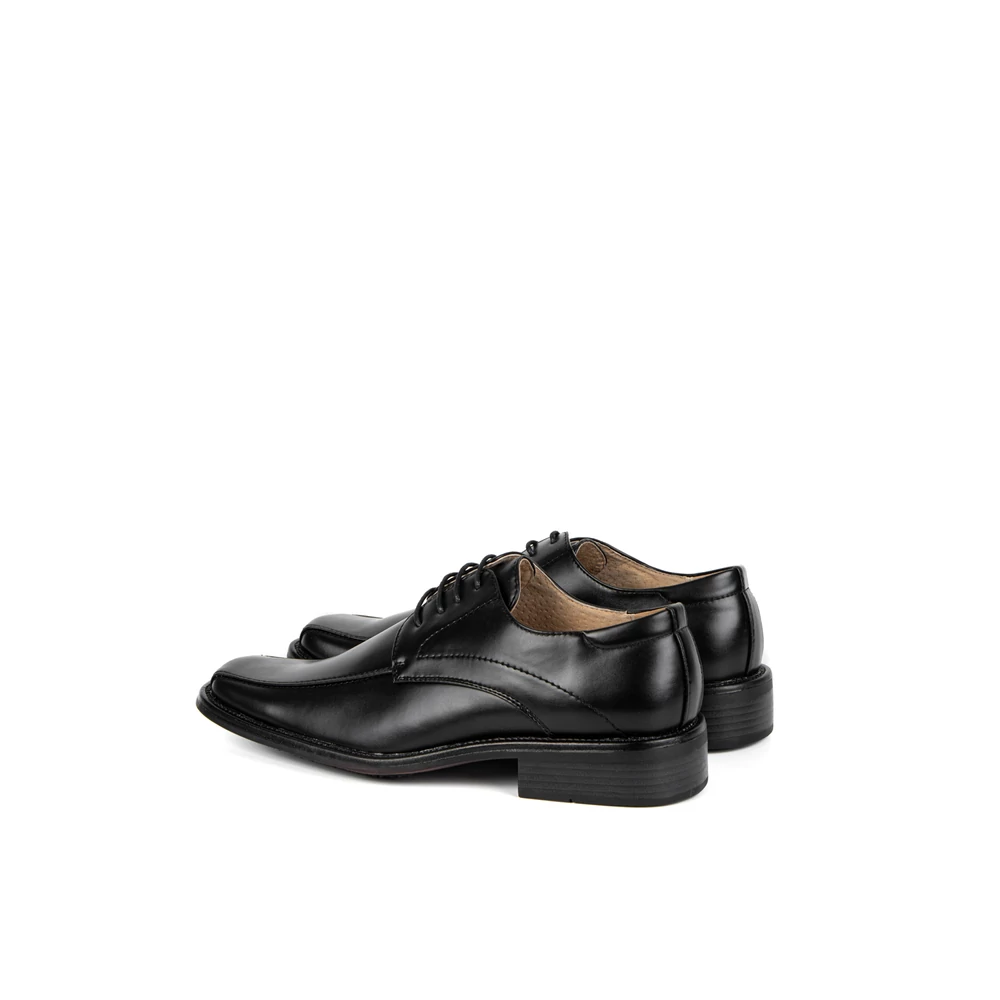 Fekete színű, műbőr, fűzős alkalmi vagy utcai férfi cipő.