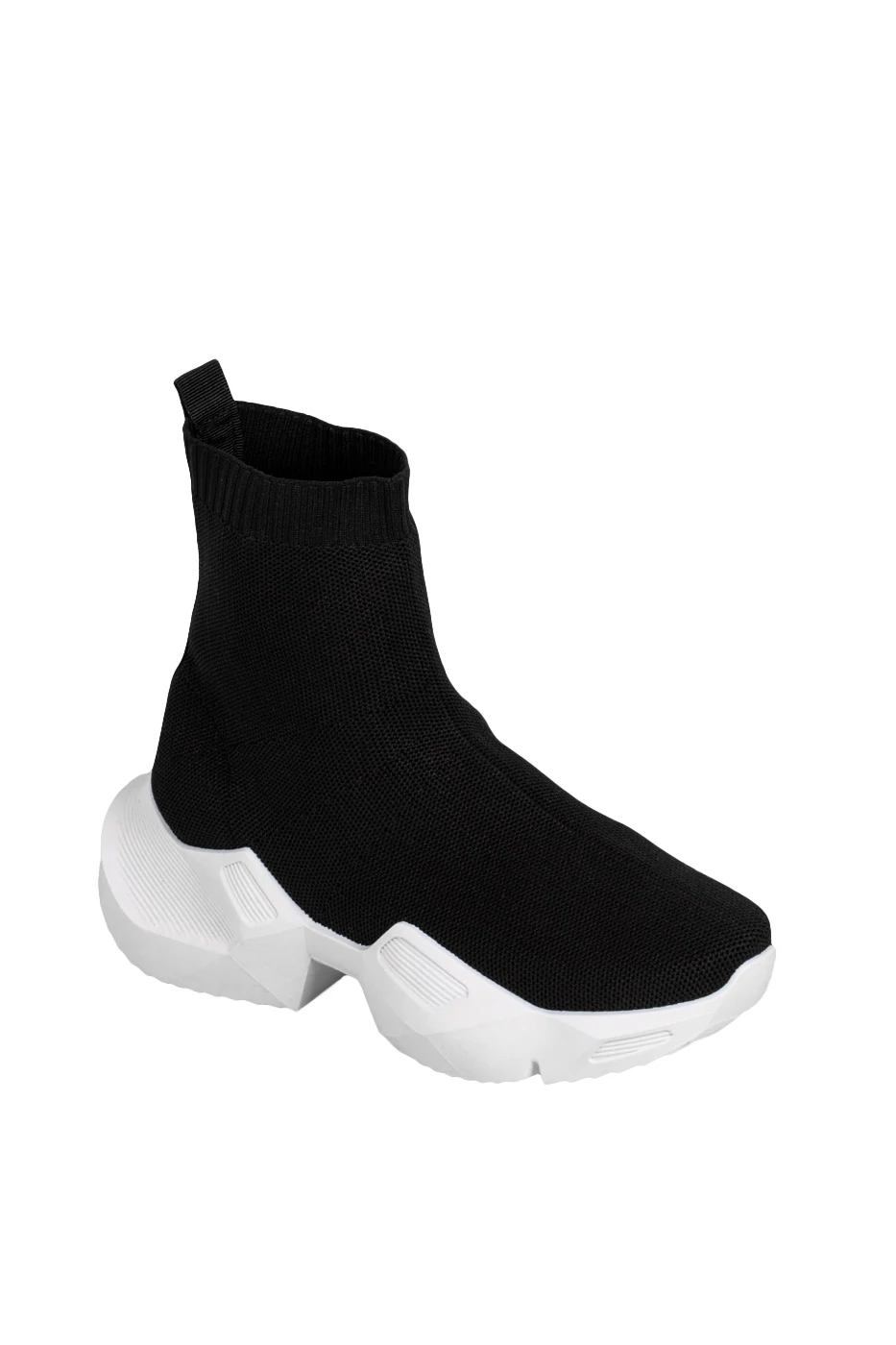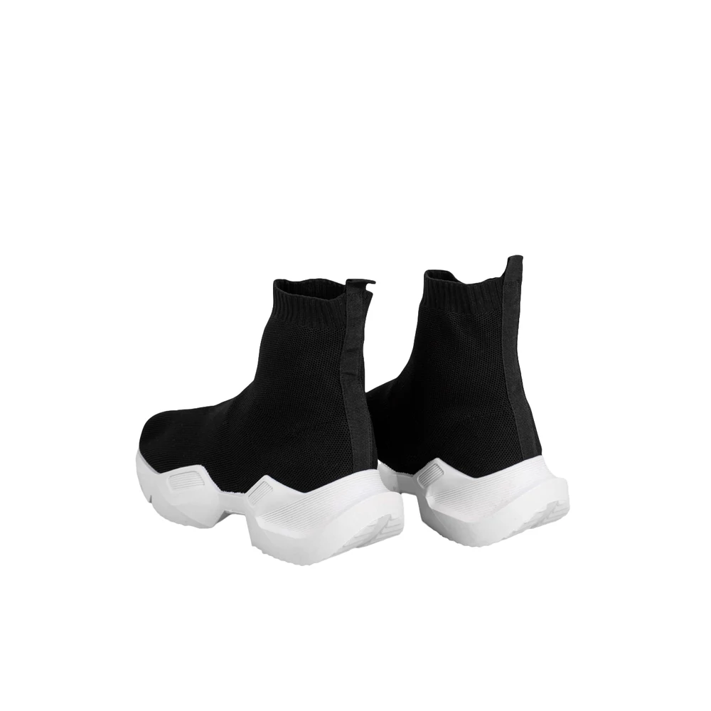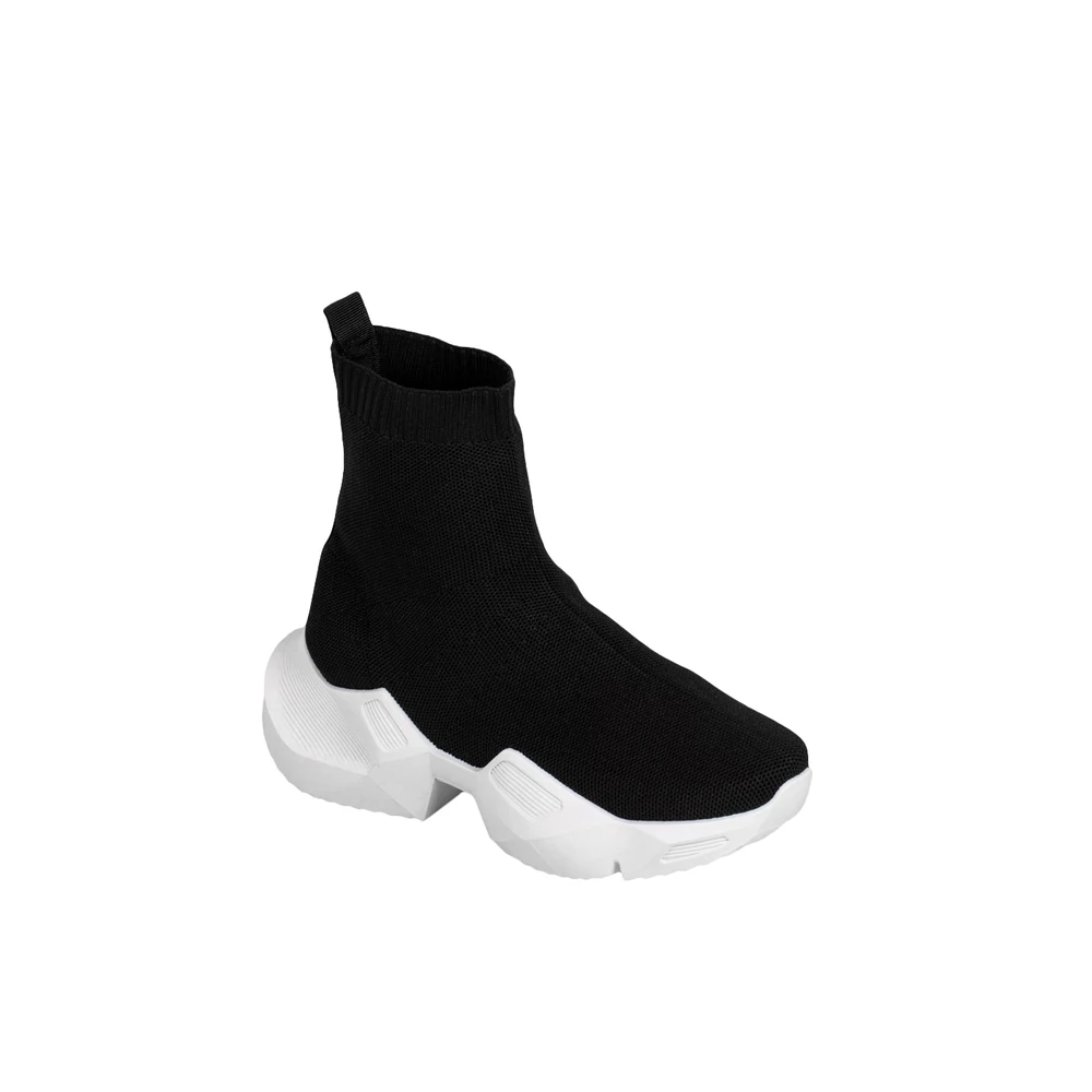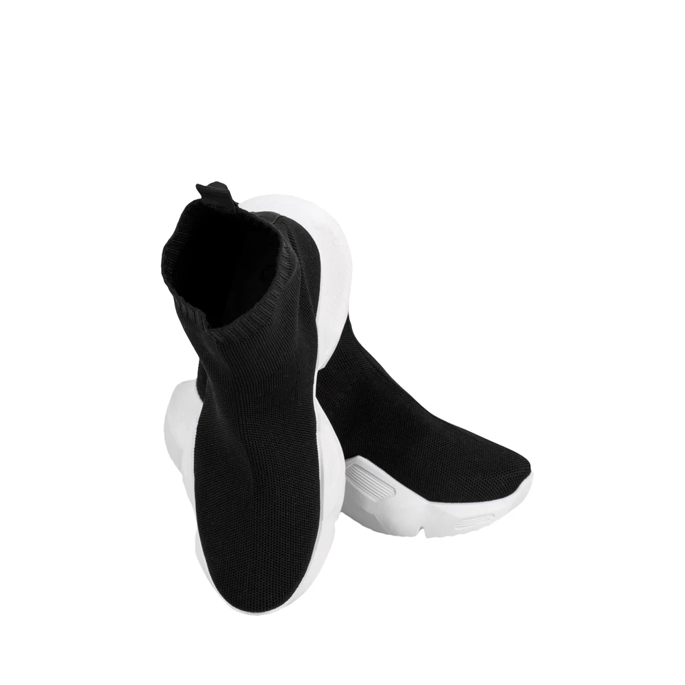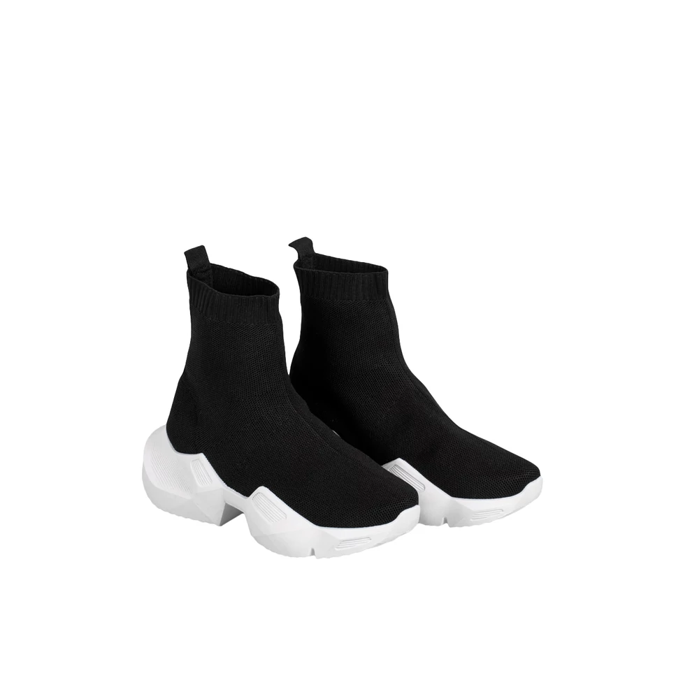 Zokniszerű, textil bokacipő, extravagáns, egyben kényelmes viselet az enyhe tavaszi napok során.