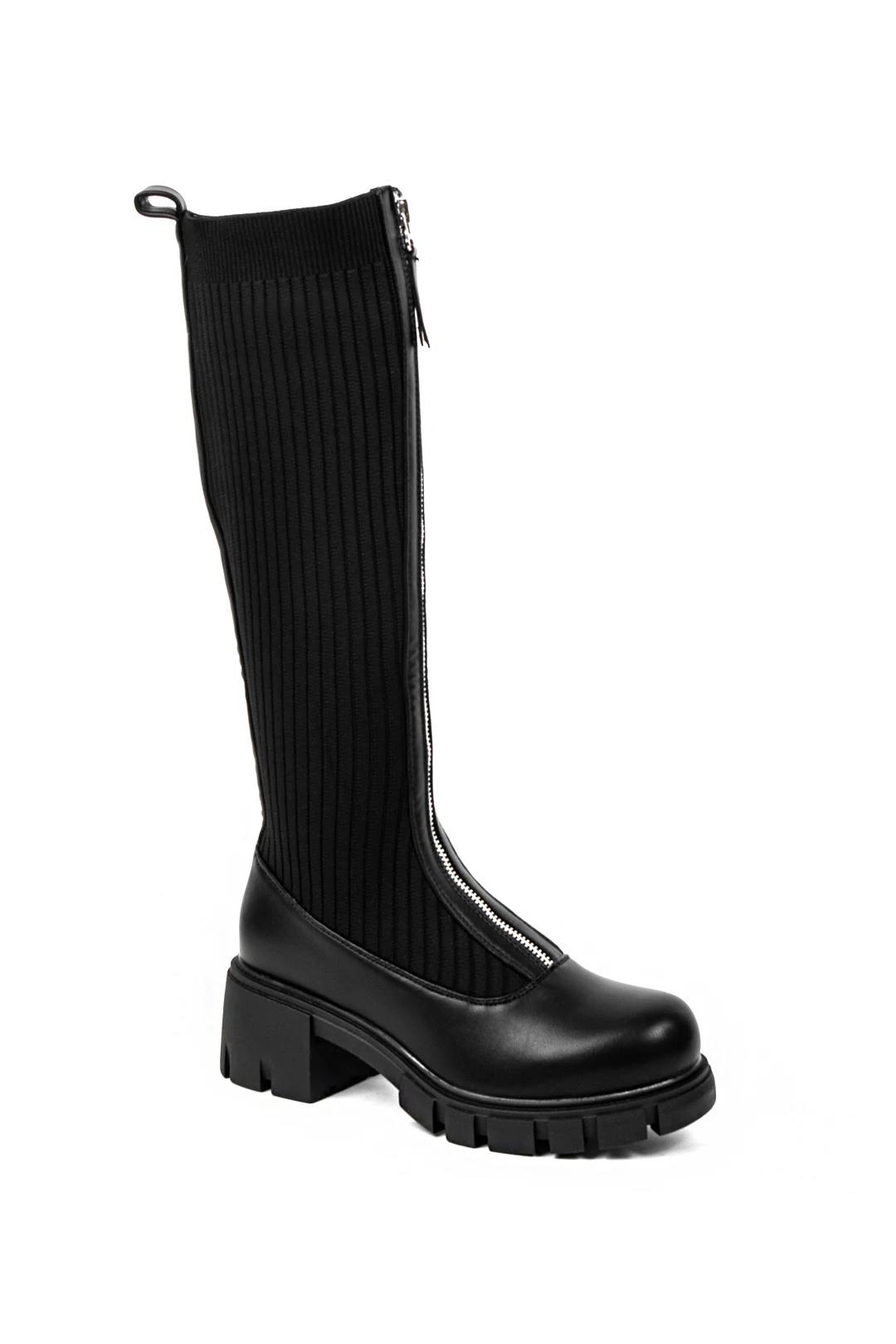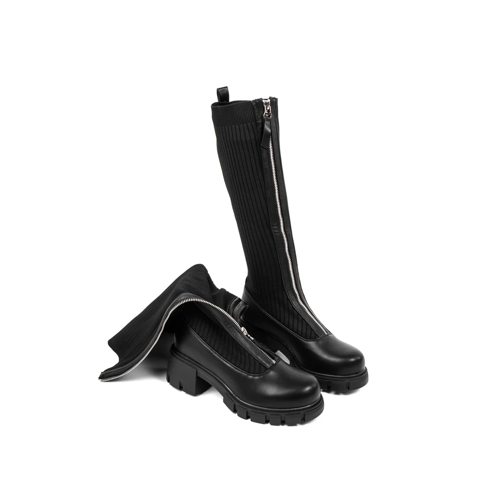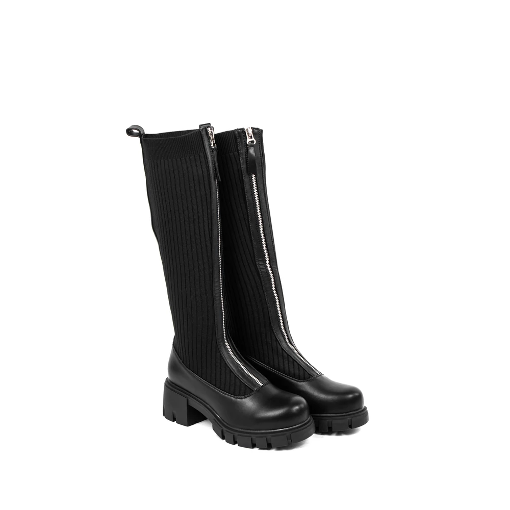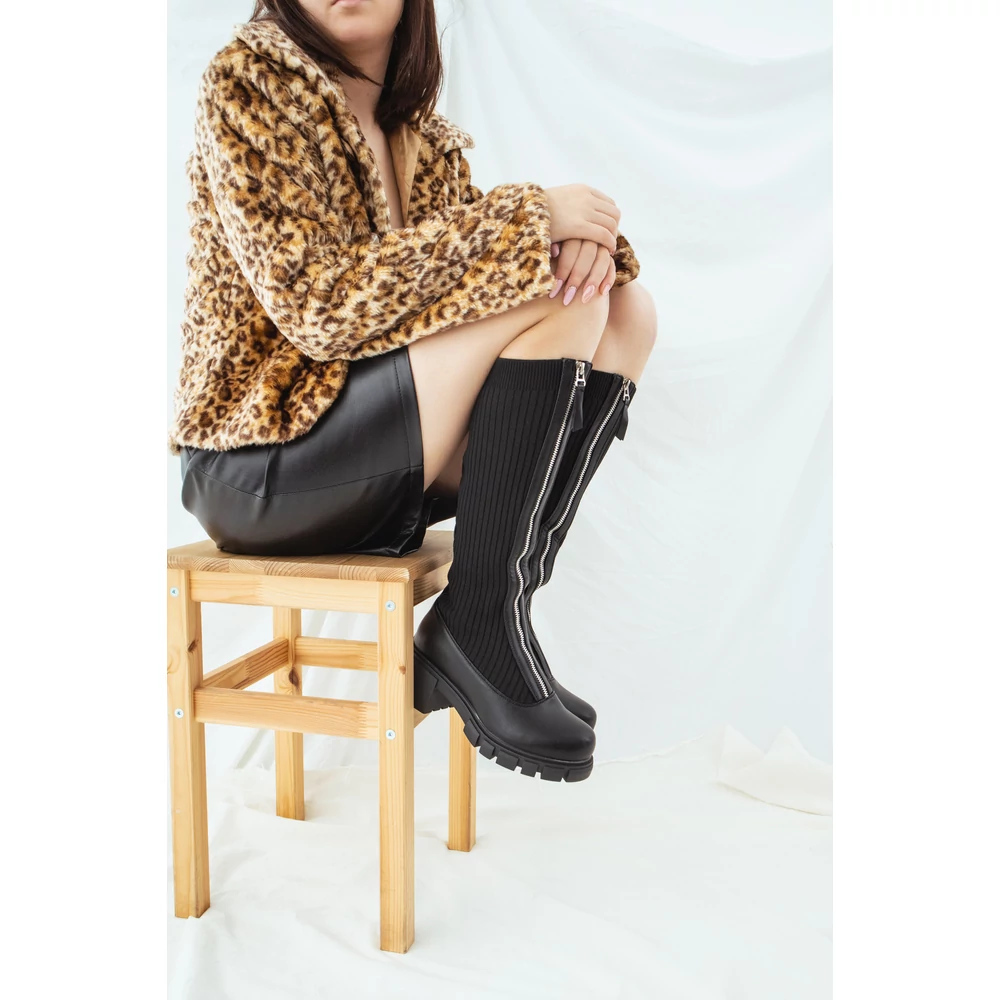 Fekete Harisnyaszerű Magasszárú Csizma Cipzárral Az Elején