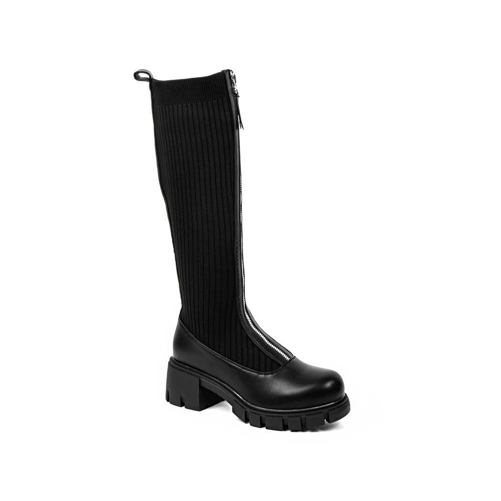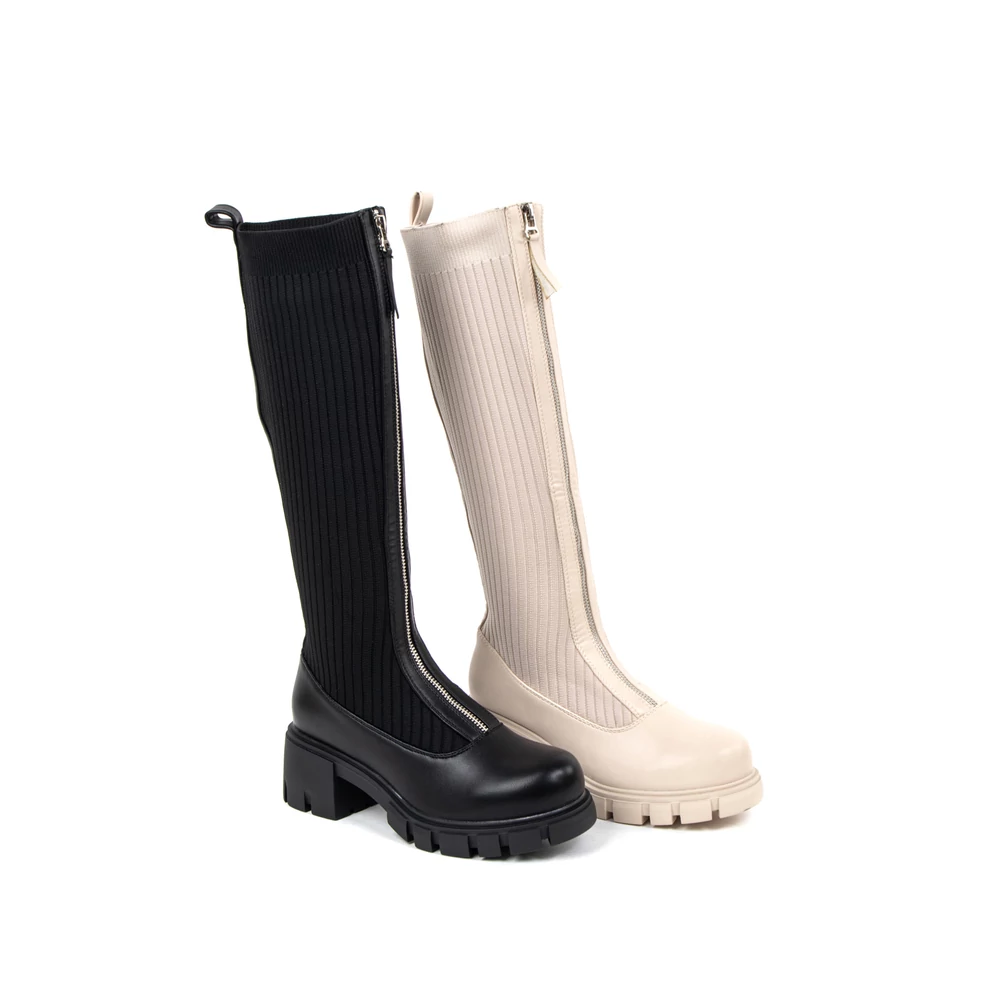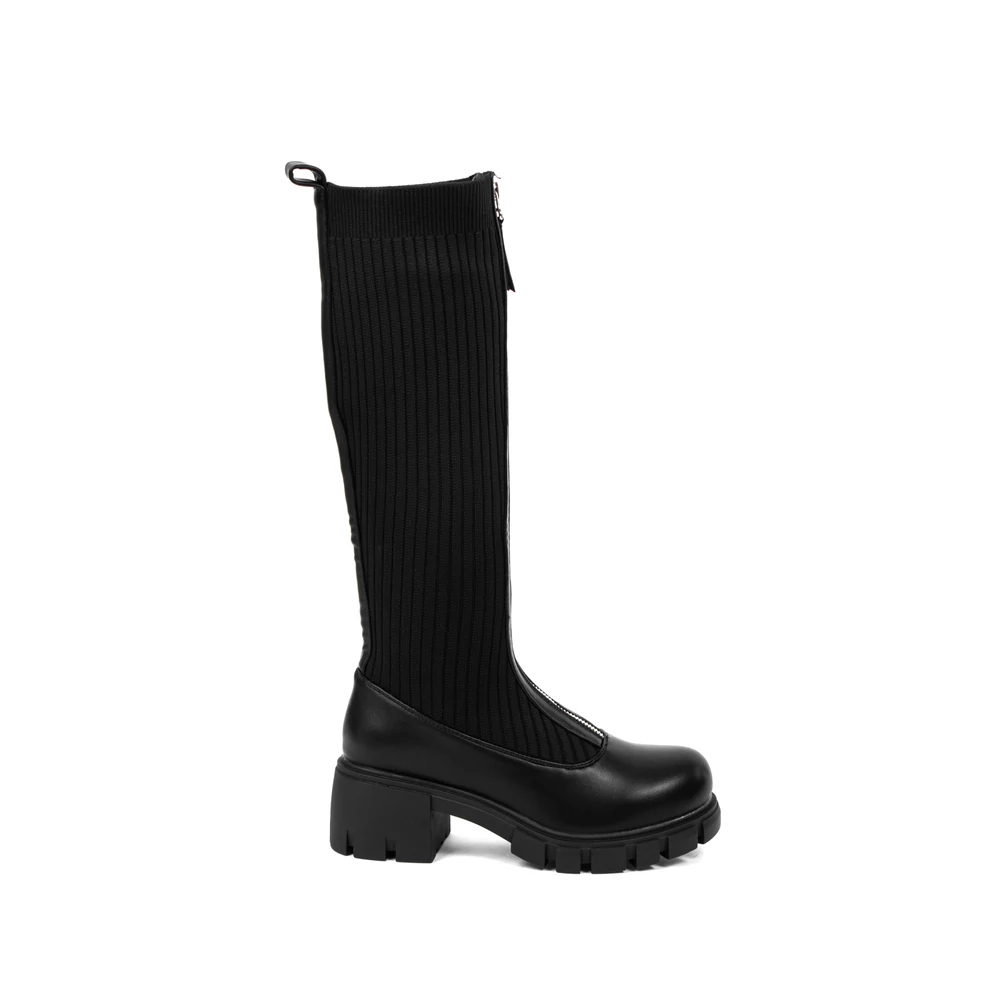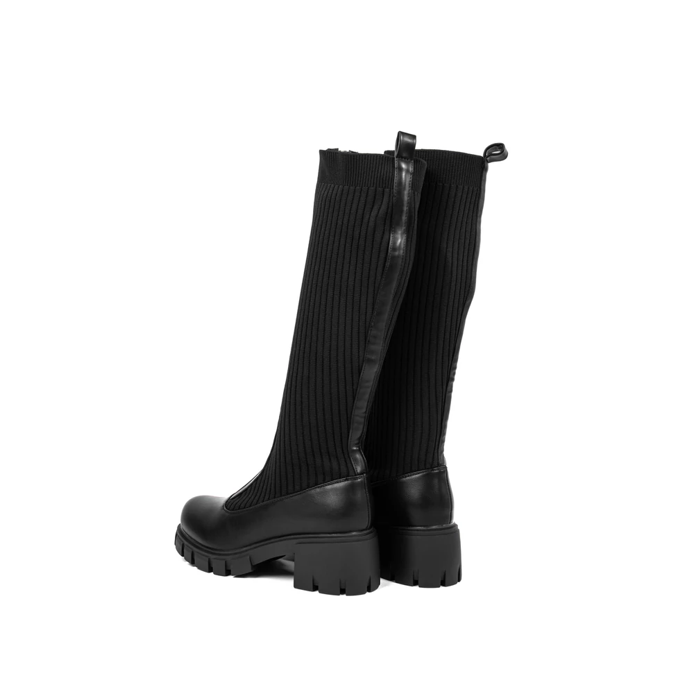 Fekete Harisnyaszerű Magasszárú Csizma Cipzárral Az Elején