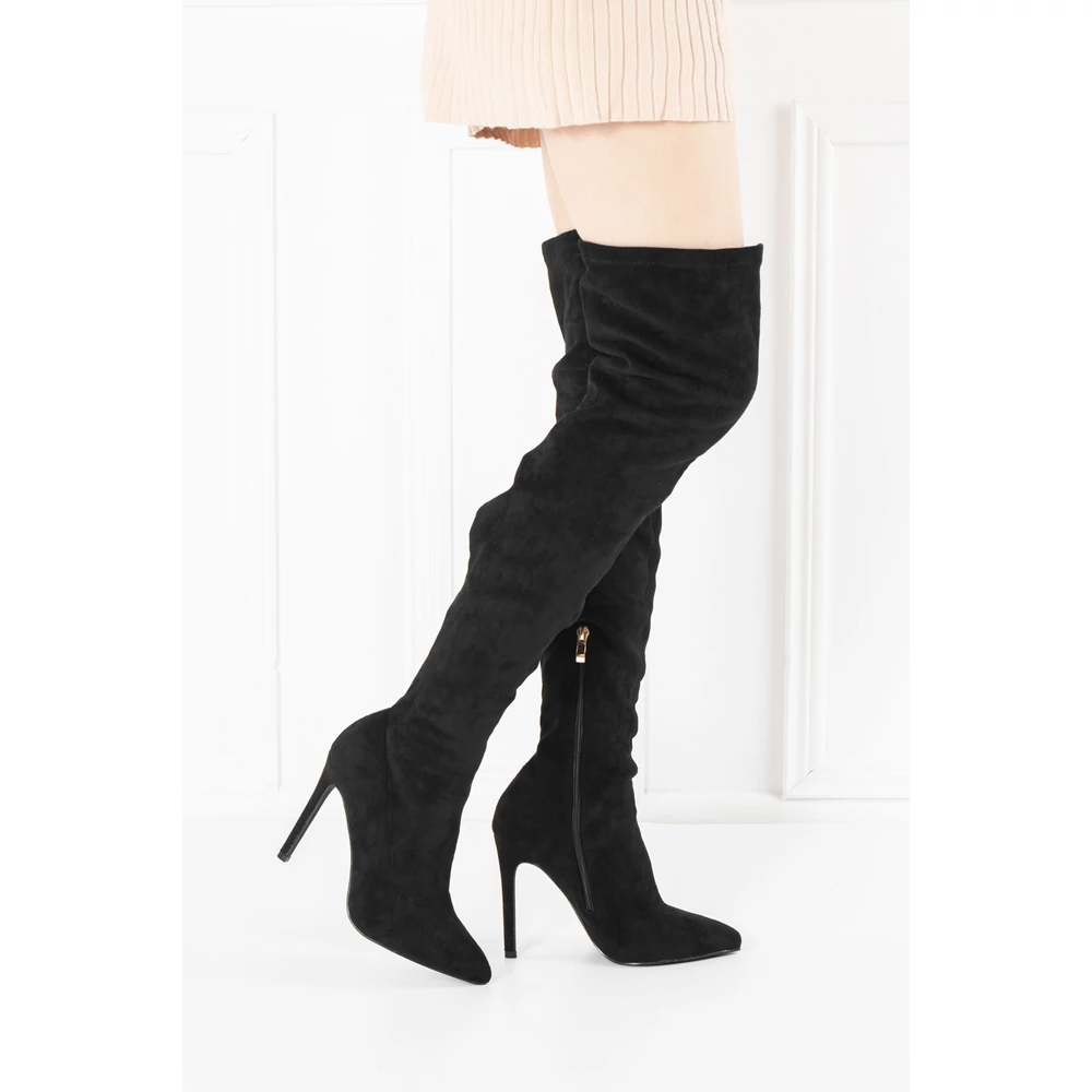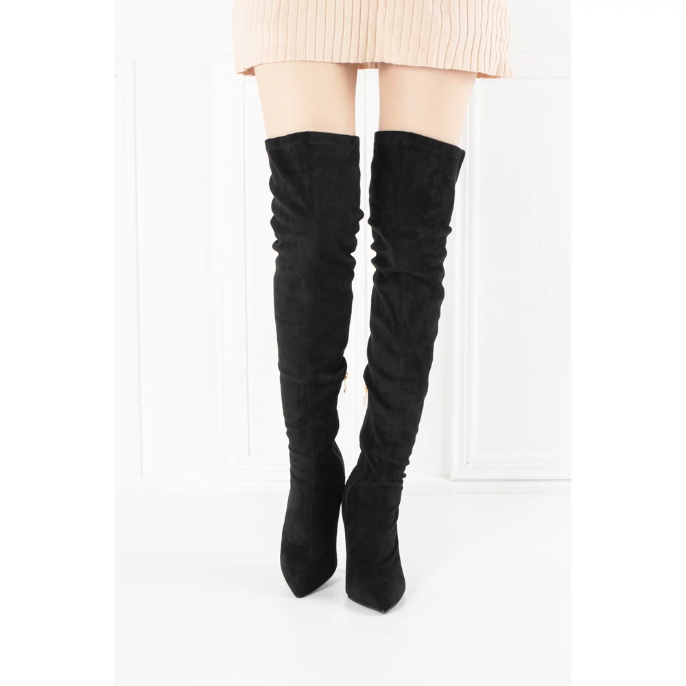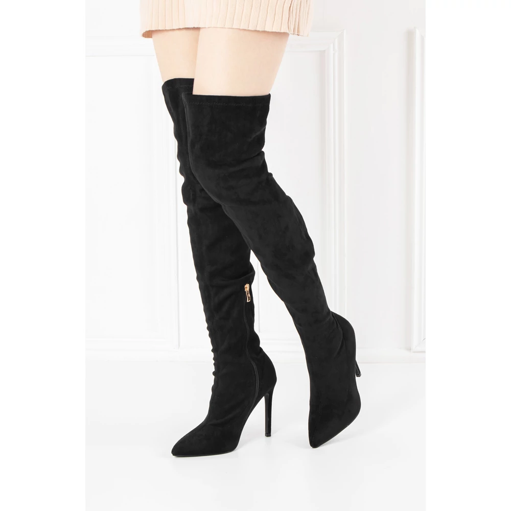 Bosido Fekete Magasszárú Csizma Gumis Szárral