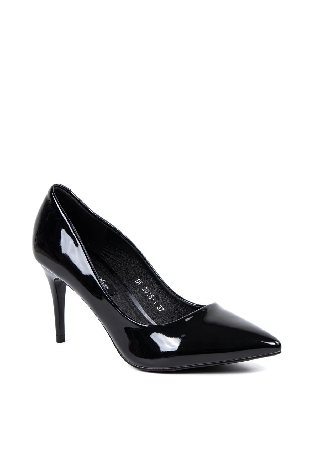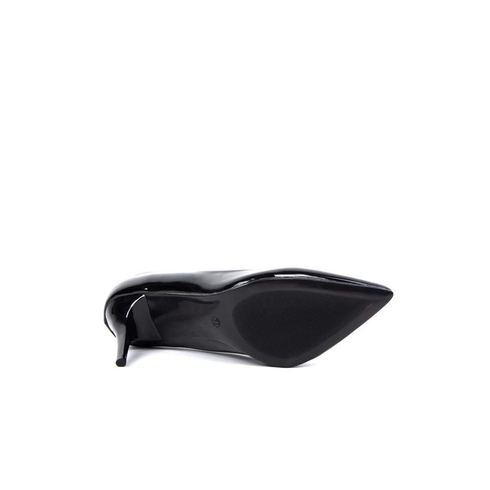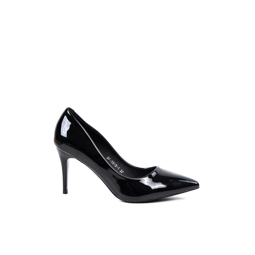 Lakkozott alkalmi cipő, mely páratlan megjelenést és önbizalmat kölcsönöz viselőjének.